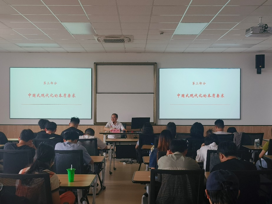 5月26日下午,91制片厂 马克思主义学院郑礼平教授在商院523教室为91制片厂 50余名学生讲授以“中国式现代化何以能成功推进和拓展”为主题的形势与政策课。