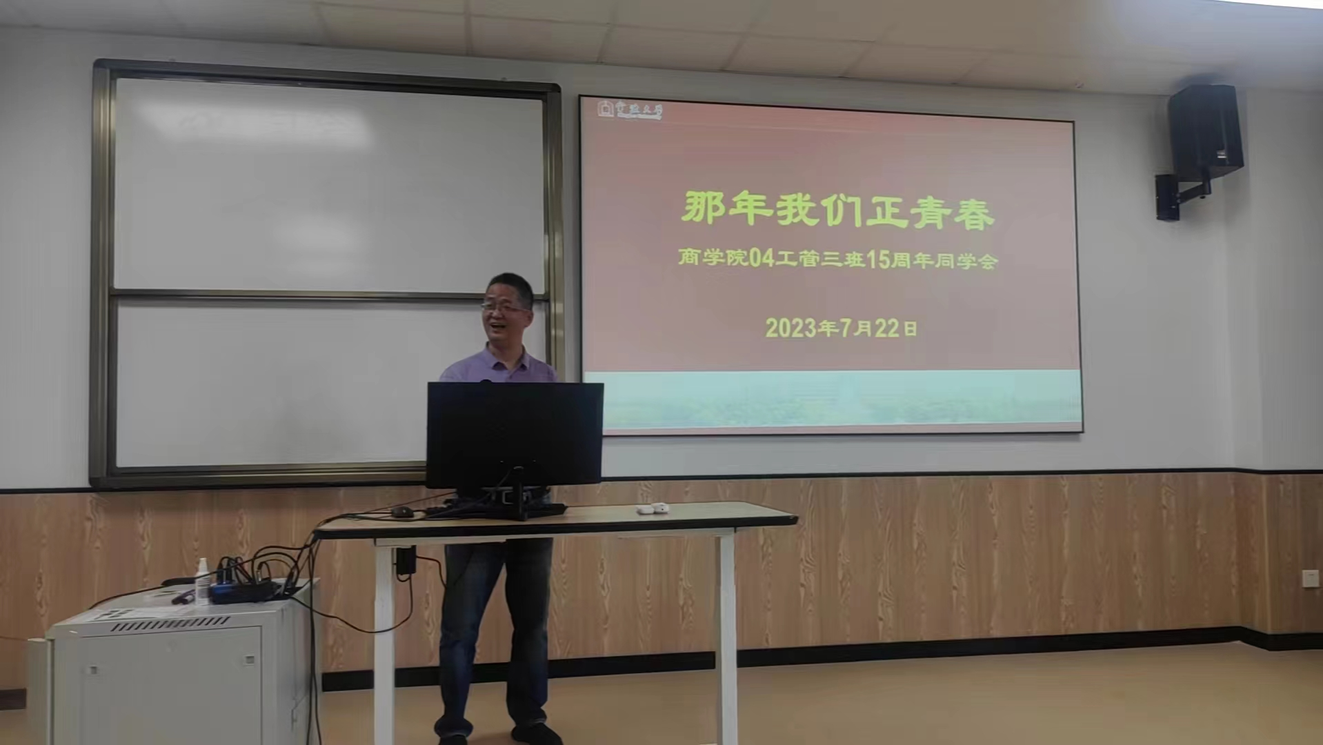 7月22日下午,04工商管理3班在91制片厂 314教室举行毕业十五周年班会。班会由该班班主任朱福建主持。