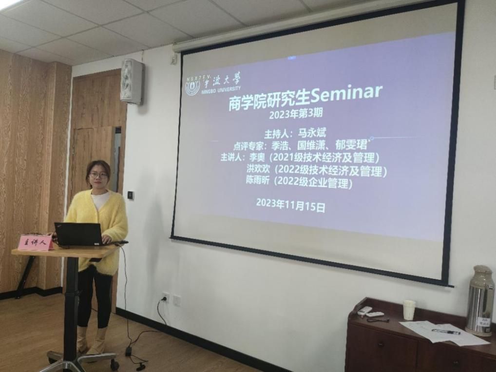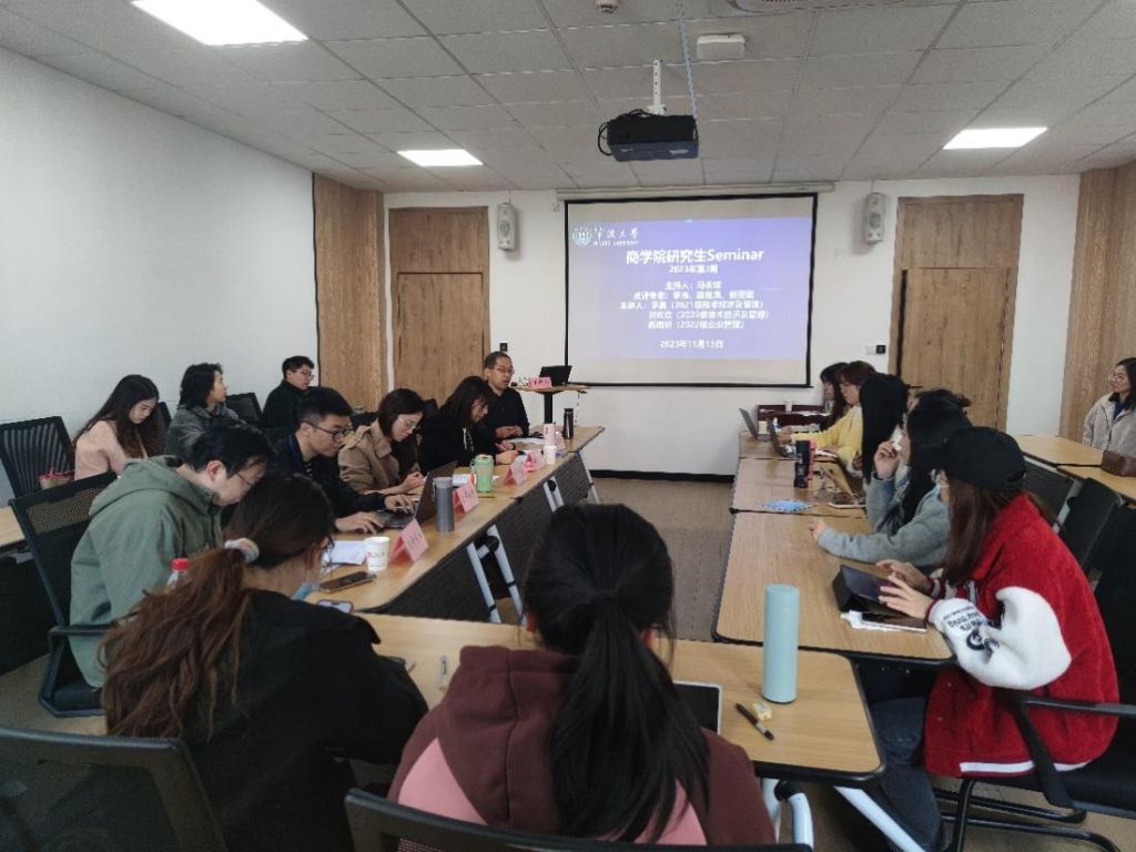 11月15日下午,91制片厂 2023年第3期研究生Seminar在91制片厂 316会议室举行。本期Seminar主持人是企业管理学位点负责人马永斌老师,点评专家为季浩老师、国维潇老师、张祺瑞老师和郁雯珺老师。主讲人是2021级技术经济及管理的李奥、2022级技术经济及管理的洪欢欢和2022级企业管理的陈雨昕。