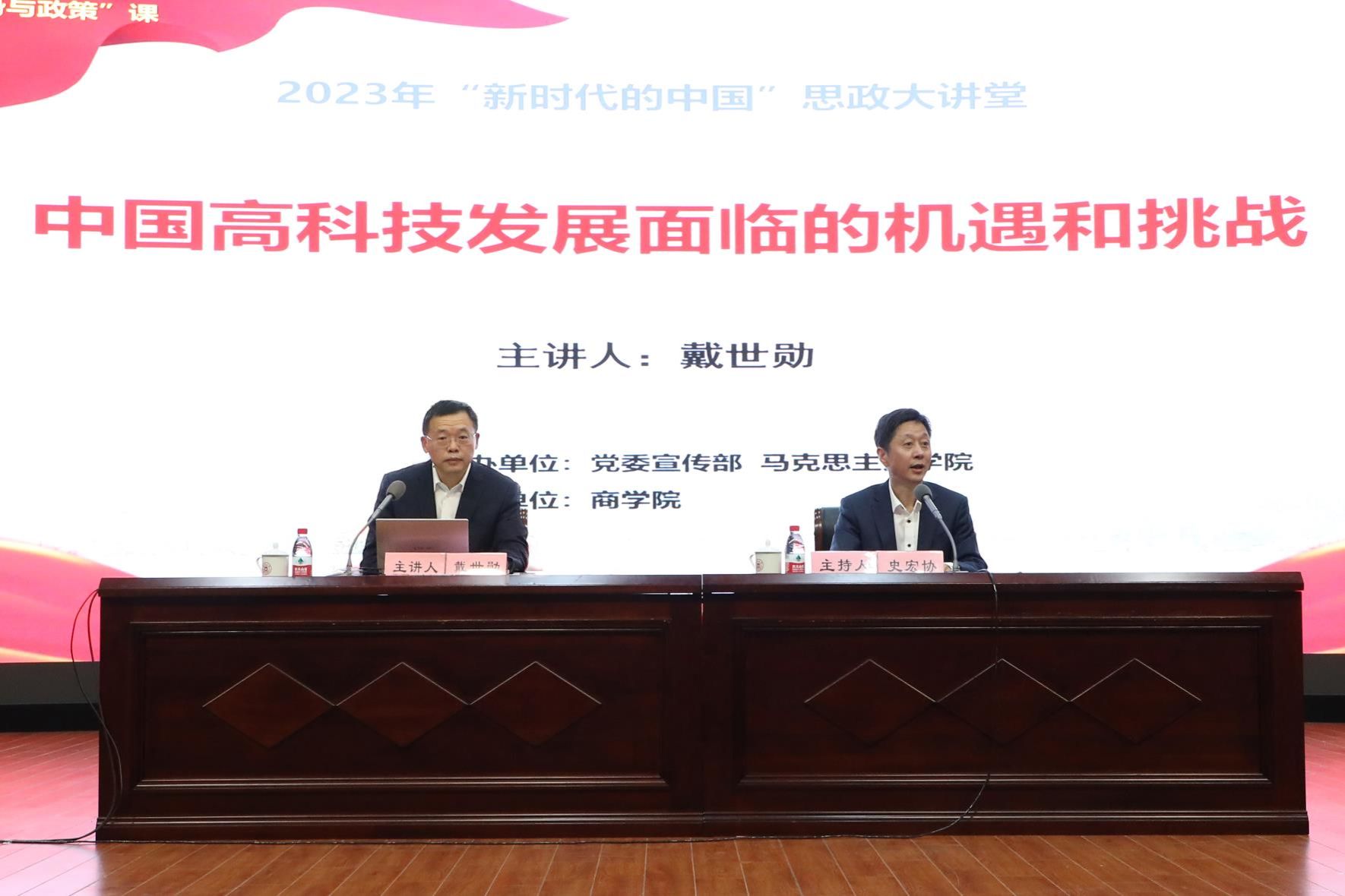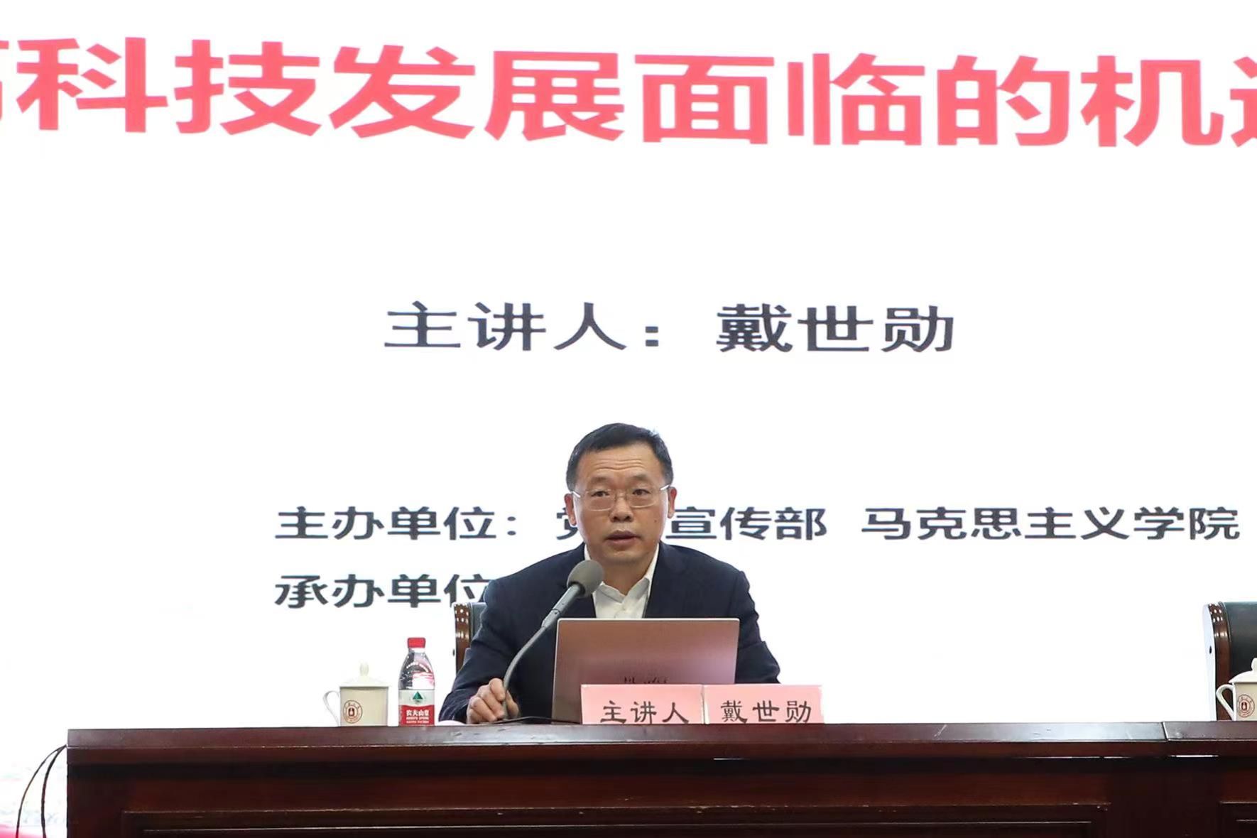 戴世勋从“中国高科技的现状”、“西方国家对中国打压加剧”、“中国高科技出路”三个方面出发,对中国高科技发展面临的机遇和挑战进行了深刻分析讲解。在全面把握党的二十大的重大意义基础上,回顾中国综合国力快速提升的十年,戴世勋向同学们介绍了中国在载人航空、深海工程、计算技术研发等方面取得伟大成就。随后,通过与日美西方国家对比、生动的案例分析,讲诉西方国家对华的打压加剧,但与此同时,他认为中国高科技产业也正在加速崛起,这反而会成为加速中国在高科技领域自主研发的推进器!最后,戴世勋立足党的二十大报告,深度分析中国在“教育优先发展”、“科技自立自强”、“人才引领驱动”三方面的政策与成就,并提出三点寄语,希望同学们关心世界和国家大事、加强政治理论学习、只争朝夕,不负韶华。