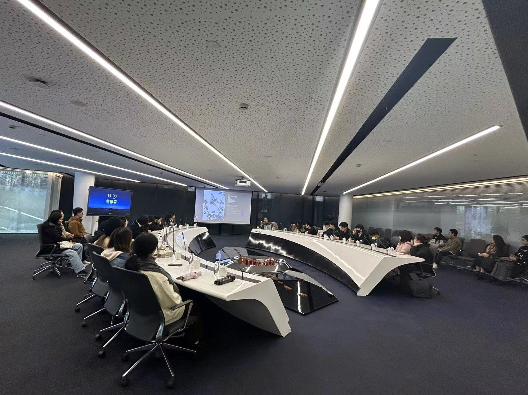 在随后的座谈会上,太平鸟集团的裘总分享了公司的文化基因、历史发展及未来规划。裘总对太平鸟的文化基因进行了深入讲解,包括公司的价值观和核心理念,使同学们更好地理解了这一时尚企业的精神和内涵。