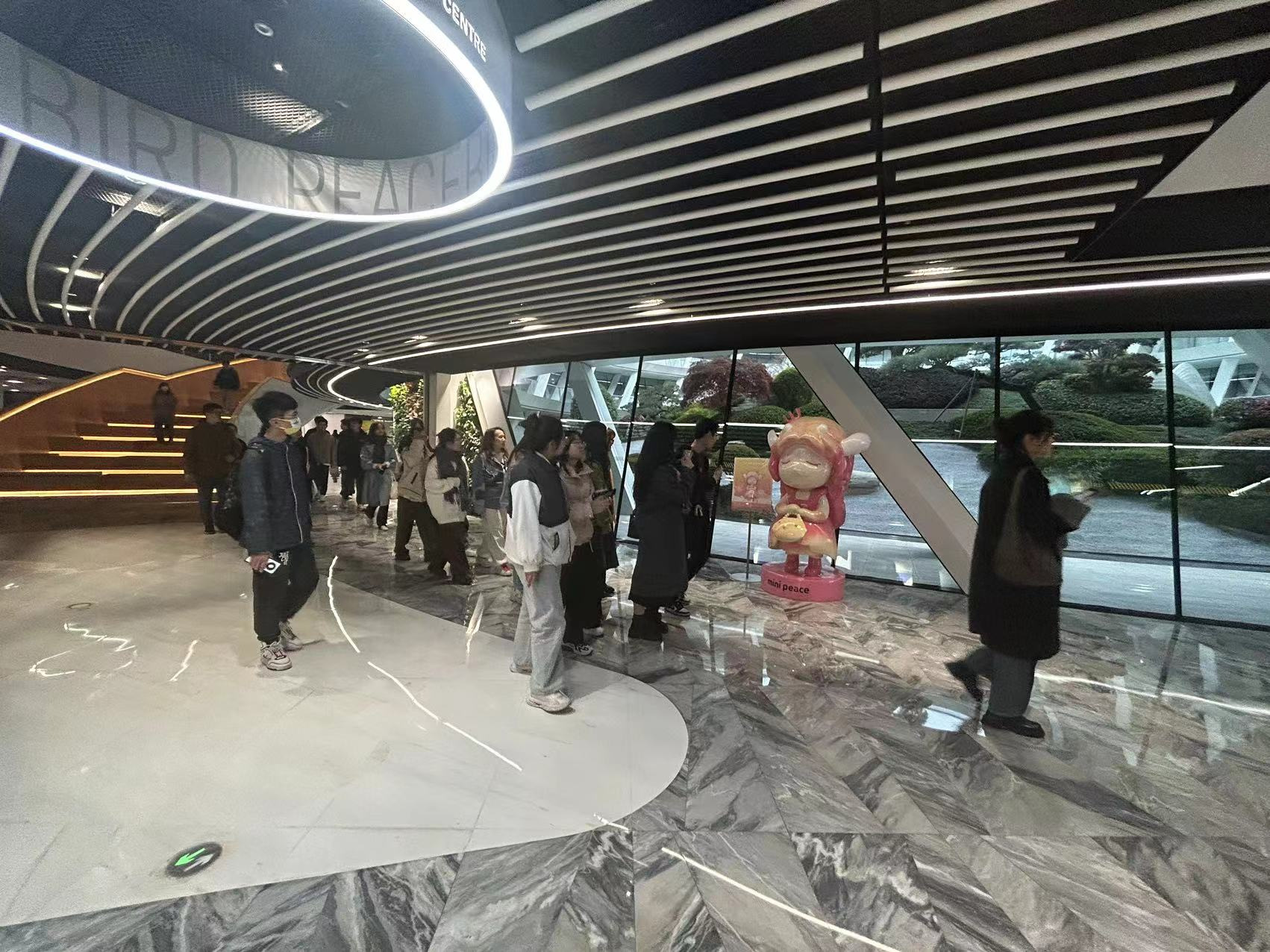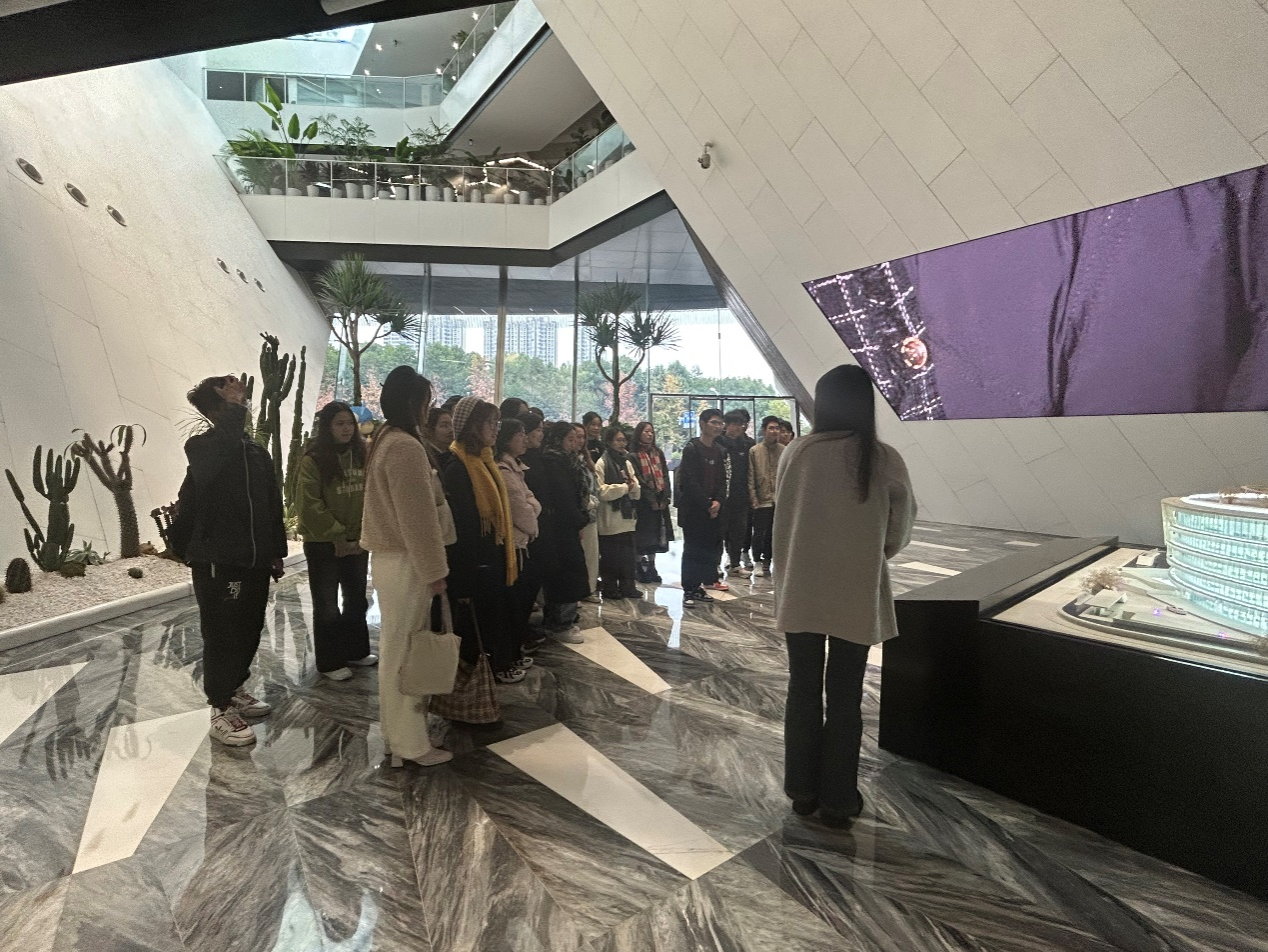 首先,太平鸟集团的工作人员热情引导师生参观“太平鸟时尚中心”,其中“鸟巢”的精巧设计和独特构思给大家留下了深刻印象。在工作人员细致的讲解下,同学们深入了解了太平鸟的建筑风貌和零售运营中心,并实地考察了员工的工作环境。这次深入的参观体验让同学们通过充满设计感的布置和独特风格,充分感受到了太平鸟品牌的时尚魅力。