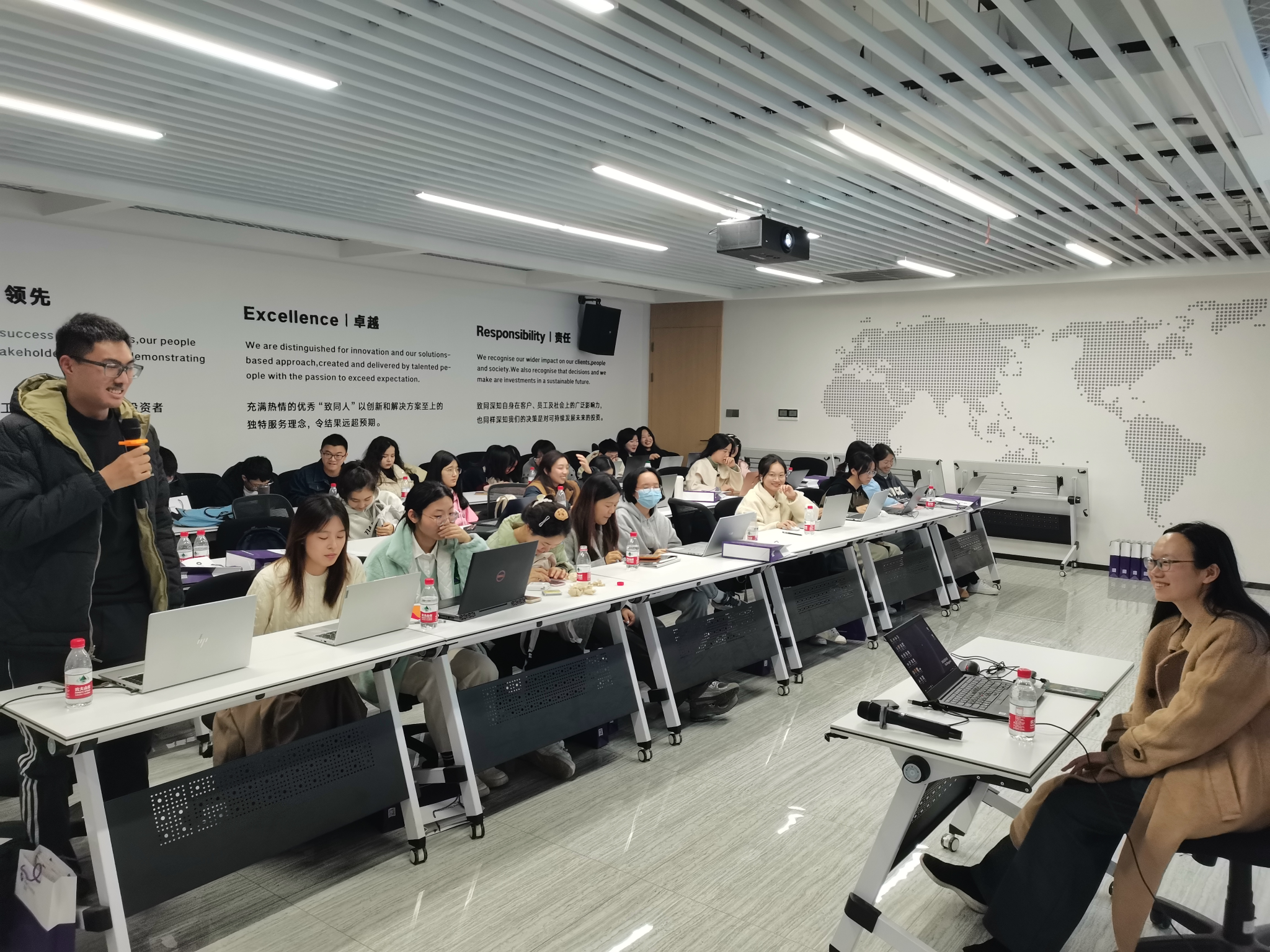 随后,致同所研究院的周丹老师结合自己的专业知识和同学们的理论基础,准备了具有针对性的教学课件,为同学们讲解了致同完整的审计业务流程,并在审计证据获取、审计工作底稿类型与内容以及审计业务约定书的格式等几个方面展开了详细的讲解。