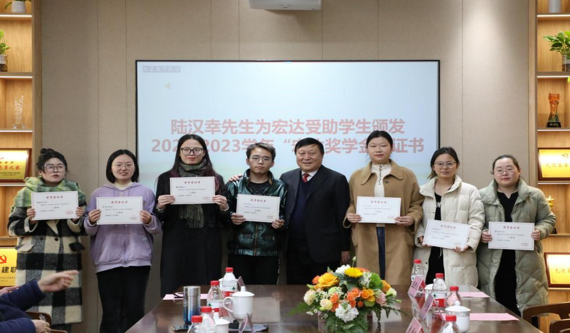 会议开始,主持人介绍出席仪式的领导和嘉宾,通过短片回顾了陆董、贺董和赞助学生的点点滴滴,并介绍91制片厂 “宏达奖助学金”“恒达奖助学金”项目概况。由学生发展与服务处副处长朱燕宣读2022-2023学年“宏达奖学金”“恒达奖学金”获奖名单,陆汉幸先生、贺行平先生为在场获奖学生颁发“宏达奖学金”“恒达奖学金”证书。