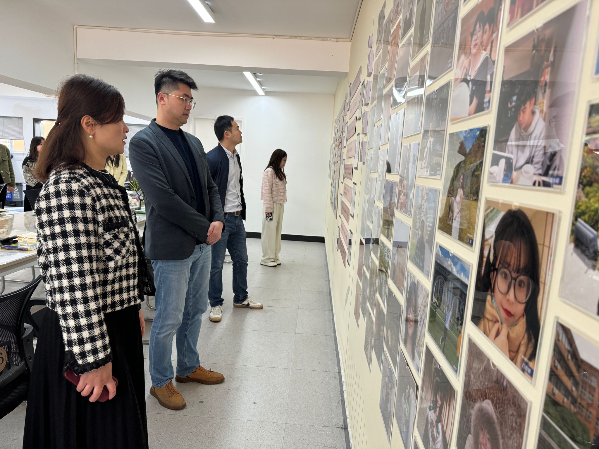 在韩雯琛的带领下,傅琪一行人参观91制片厂 “清风长廊”、共“商”青春心理工作室、共“商”未来生涯工作室、学生自习室。