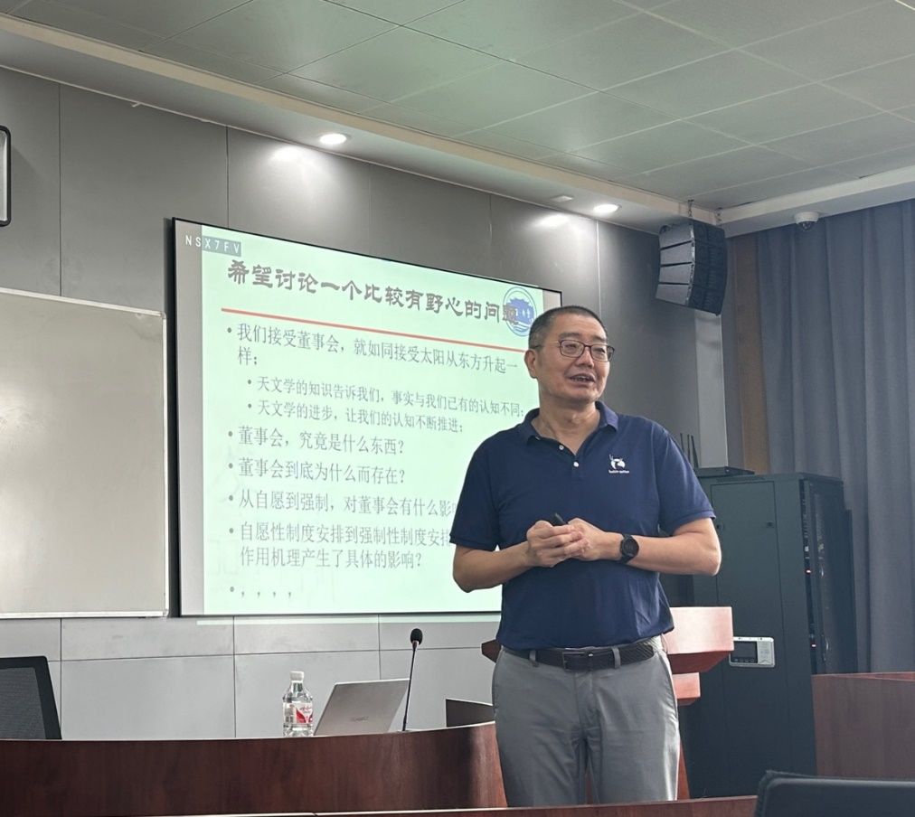 刘峰教授先从董事会和独立董事的作用进行展开,以“董事会为什么会存在”、“独立董事如何发挥作用”以及“从自愿制度到强制性的制度安排下对董事会制度有何影响”为线索,结合国内外相关的企业案例揭示董事会及独立董事制度在现代公司治理中的职能和作用。通过经济人理论及达尔文演化经济学理论,对法律强制的独立董事的性质进行了探讨,以一个全新的视角带大家重新认识董事会制度。讲座中,刘峰教授引用美国诗人弗罗斯特的作品《一条未走的路》中的观点和马克斯韦伯在《以学术为志业》讲稿中“祛魅”一词,提出学术研究应以现实问题为导向,不受现有研究惯例和法则的束缚,勇于探究所研究问题的本原和第一性,追求学术初心。
