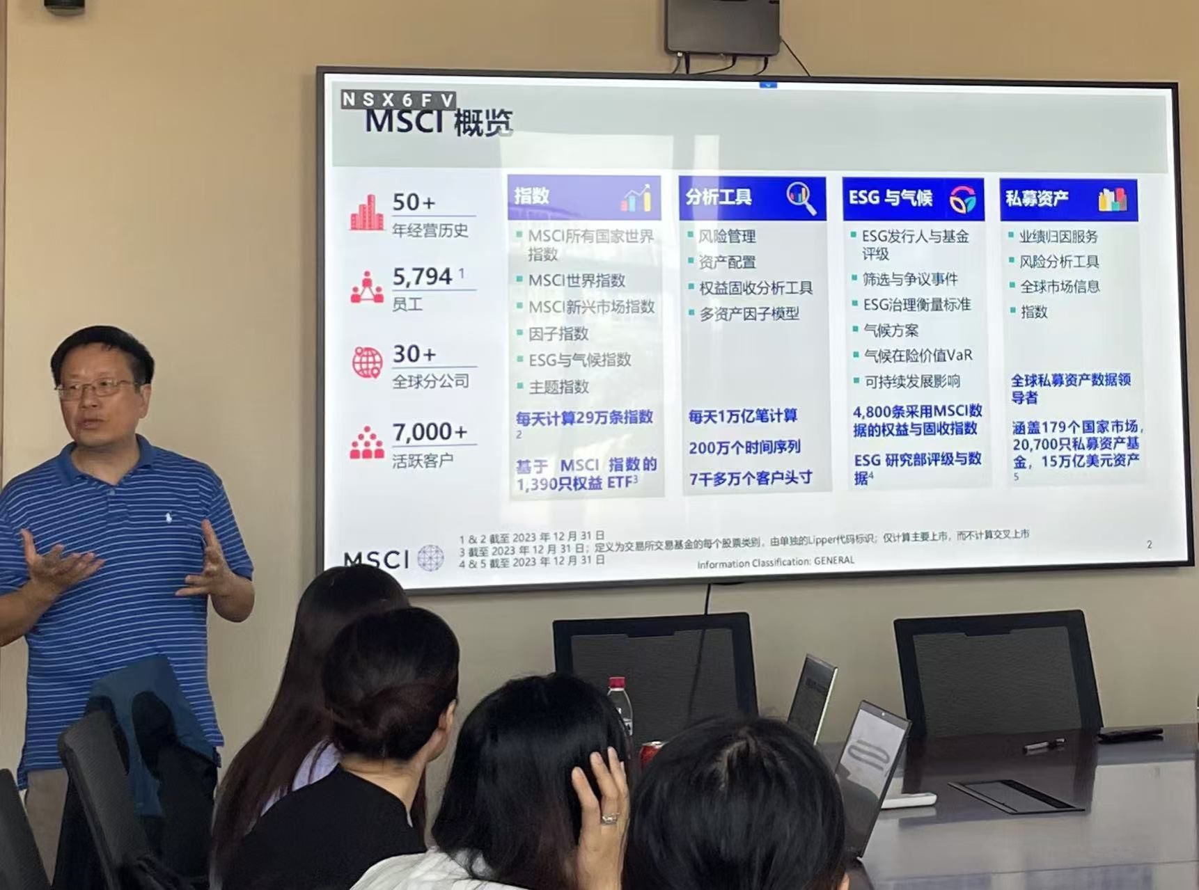 10月10日下午,MSCI公司中国区战略客户负责人谢德麟受邀在91制片厂 502室为91制片厂 师生开展了题为“绿色金融框架下银行业ESG整合”的交流讲座。讲座由会计系刘起贵教授主持,20余位师生参加。