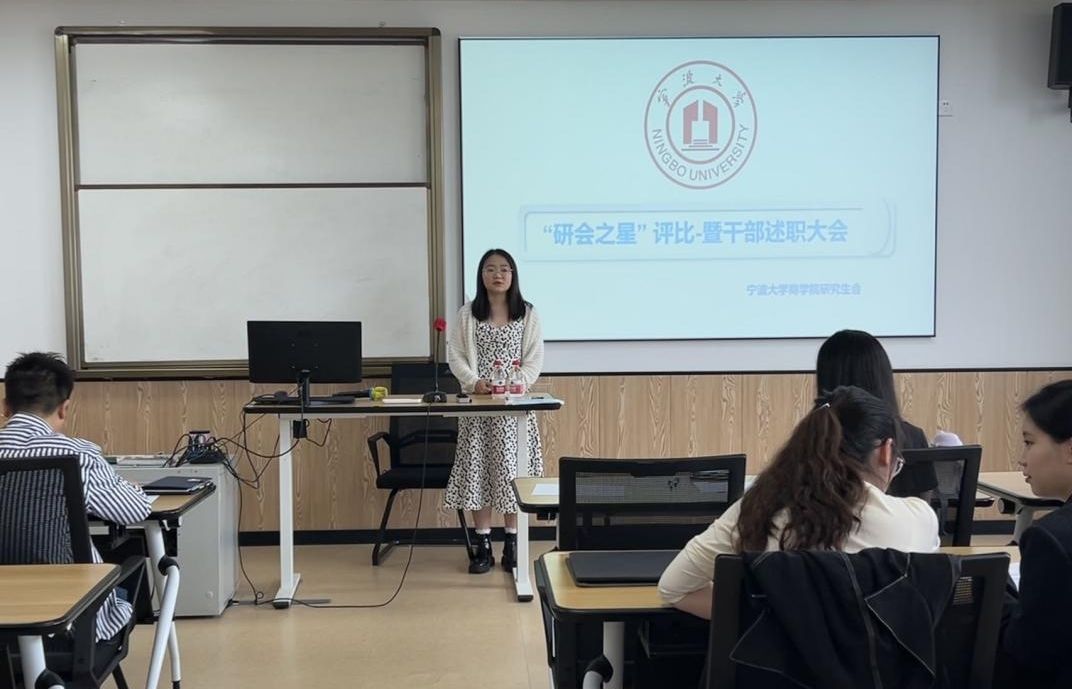 随后,开展“研会之星”评比环节。11位候选人依次登台,进行了紧凑而精彩的3分钟答辩。在答辩中,他们详细展示了自己在研会一年来的工作成就、个人成长和未来规划,同时表达了对研会的深厚情感以及对老师和主席团成员的诚挚感谢。最终,经过激烈的角逐和公正的评审,金盈、叶岚、孙梦婷、王鹤霏、刘靖童、邵新立六位同学荣获本届“研会之星”称号,黄禧阳、包爱爱两位同学荣获“研会先进个人”的荣誉。