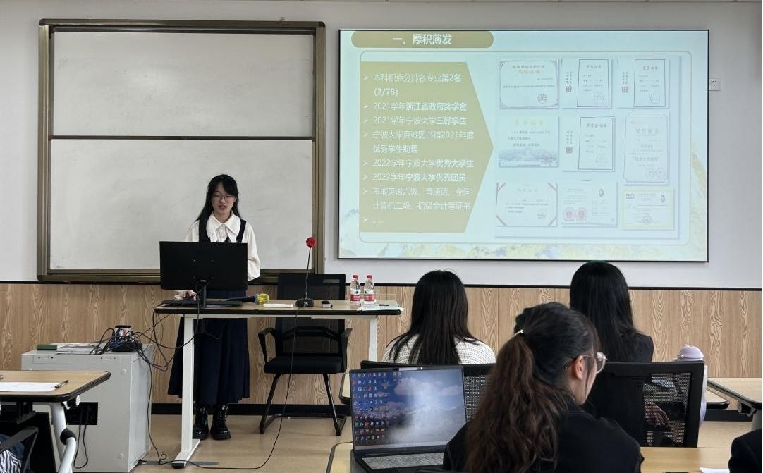 活动伊始,由主席团进行述职汇报。主席团成员金佳萍、陈奕帆依次发言,就各个部门本学期的工作进行阐述,总结工作经验,分享工作心得,肯定了本学期工作的同时,也提出了工作中的不足之处,并对未来的改进方向提出了建议。