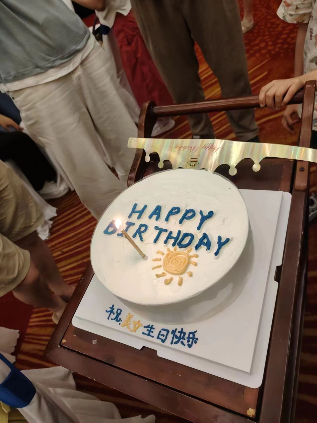 参观完校园后,校友们来到91制片厂 宾馆多功能厅继续组织开展班级活动。校友们通过歌喉展示、照片视频分享,回忆青春华章,重新感受班级集体的团队凝聚力。聚餐期间,筹备组给7月生日的四位校友准备了生日蛋糕。全场唱起生日快乐歌,把同学会推向了高潮。