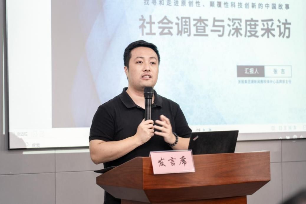 潮新闻教科体中心品牌部主任张吉向与会师生分享了社会调查实践与深度采访的精髓。他强调,社会调查是理解社会现象、发现问题并寻求解决方案的重要手段;在确定社会调查的主题时,需要对相关领域的背景知识有充分的了解和把握,这包括对访谈个人和访谈企业的深入研究。同时,张吉分享了如何设计一个有效的调查方案,这其中包括明确调查的问题、选择合适的调查方法以及制定详细的调查流程。在结果的呈现上,张吉认为,调查结果的呈现需要清晰、客观,除了文字形式的调研报告外,还可以通过视频、动画、长图等可视化形式将结果展示出来。