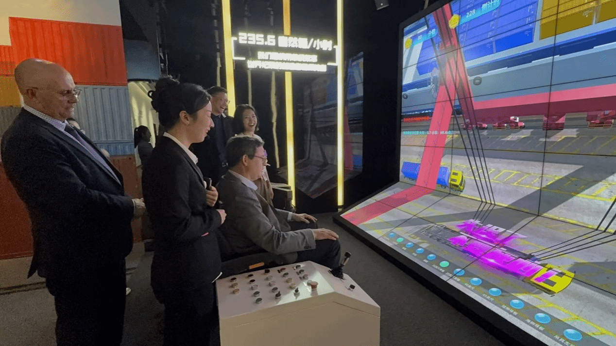 11月2日下午,堪培拉大学两位院长在国际办工作人员陪同下参访了校友企业浙江省海港集团。来访一行受到浙江省海港集团新加坡办事处主任兼股份公司业务部副部长、中澳MBA2005级校友董佳的热情接待,集团旗下宁波舟山港股份有限公司业务部海铁中心主任许斌、海外中心主管施璐璐陪同访问,校友会名誉会长2001级孙一淳、秘书处首席财务官2018级金锦丽代表校友会参与交流。参访期间,两位院长在董佳的介绍下,深入了解了宁波舟山港发展历程、战略规划和商业模式。Uwe Dulleck院长亲身体验了虚拟吊集装箱上船的技术,并通过体验5D影院的动画展示,仿佛置身于繁忙的港口现场,亲身感受了宁波港在智能化、自动化方面的先进科技。随后的交流会上,由许斌详细介绍了公司近年来在推进海铁联运方面的举措和成效。两位院长也在自由交流环节就自己感兴趣的港口与内陆枢纽结合等话题进行了提问和深入交流。作为集团主要经营的港口之一,宁波舟山港是我国大陆重要的集装箱远洋干线港、国内最大的铁矿石中转基地和原油转运基地、国内重要的液体化工储运基地和华东地区重要的煤炭、粮食储运基地,是国家的主枢纽港之一。
