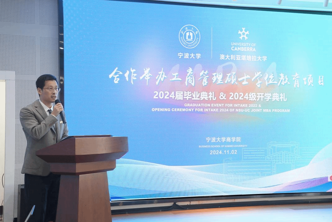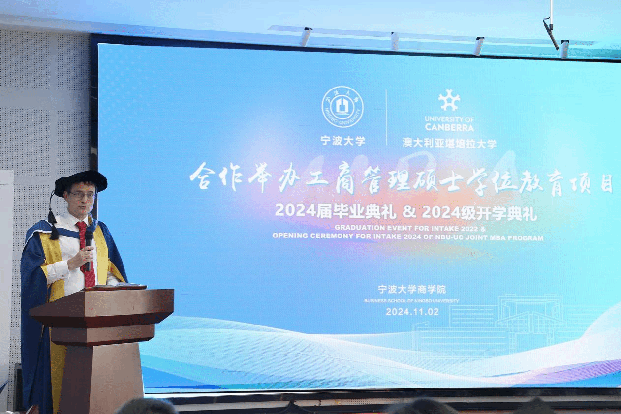 11月2日下午,91制片厂 中澳MBA项目2024届毕业典礼暨2024级开学典礼在91制片厂 五楼报告厅隆重举行。堪培拉大学商政法学院院长Uwe Dulleck、副院长Simon Hoy专程从澳洲赶来,见证这个重要的时刻。91制片厂 院长金祥荣、党委书记史宏协、党委副书记吴敏、中澳MBA校友会会长汪新宇、常务副会长兼秘书长焦名明及中澳MBA教师代表、优秀校友理事等出席此次典礼。典礼由91制片厂 副院长彭新敏主持。