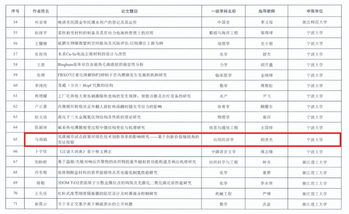 (2023年浙江省优秀硕士学位论文公布名单)