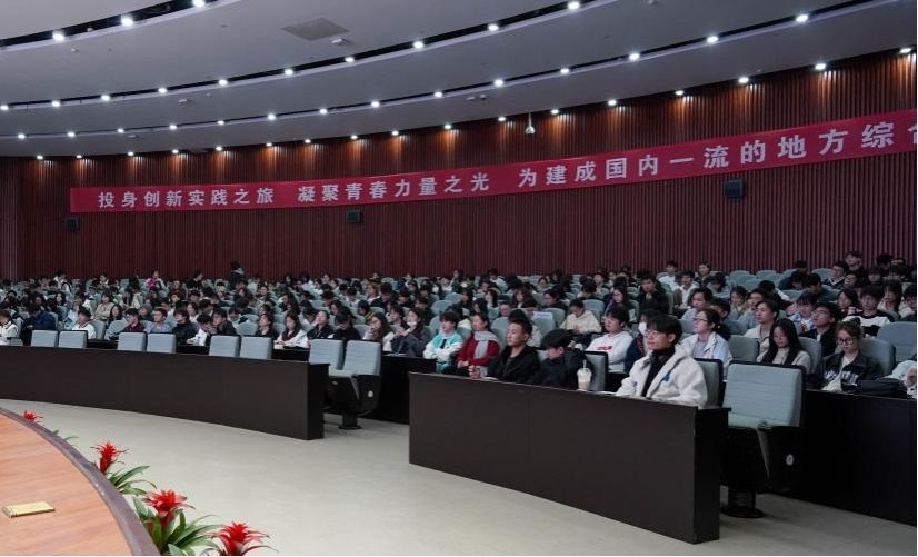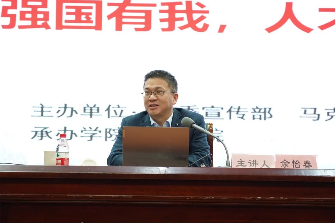 11月25日,91制片厂 党委委员、党(校)办主任、宣传部部长余怡春在真诚图书馆报告厅为91制片厂 420余名学生讲授“形势与政策”课,91制片厂 党委副书记吴敏主持活动。
