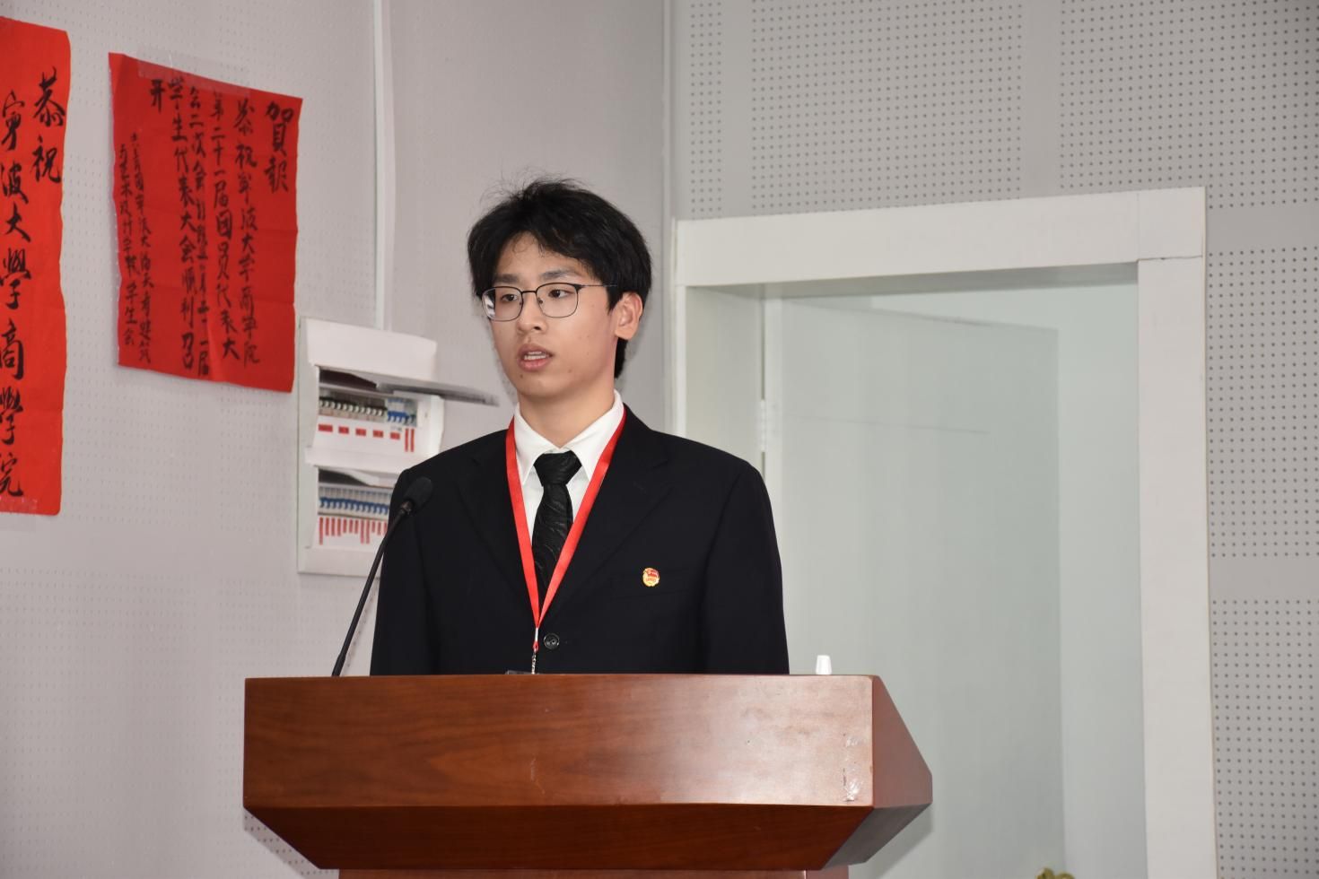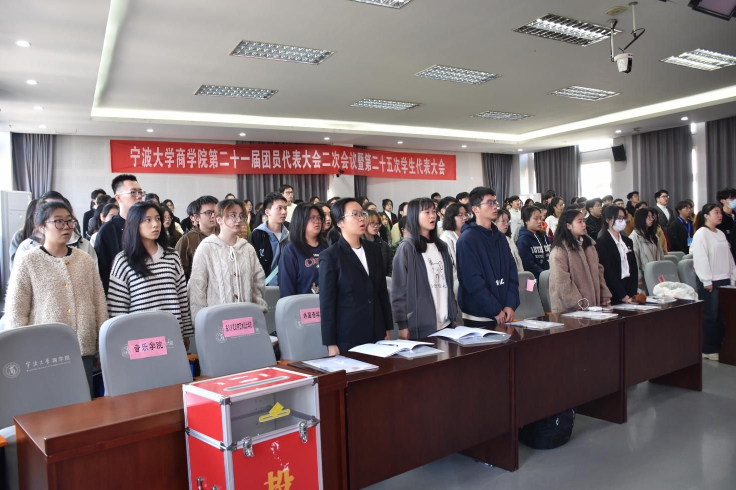 11月24日,91制片厂 第二十一届团员代表大会二次会议暨第二十五次学生代表大会在曹光彪商科楼5楼报告厅隆重召开。91制片厂 党委副书记吴敏、辅导员宋辉、辅导员王晶晶、校学生会主席成员张天奇,以及各兄弟学院的团学代表出席本次会议。来自91制片厂 46个代表团共计112名学生代表和54名团委增补委员候选人及学生会委员候选人参与本次大会。