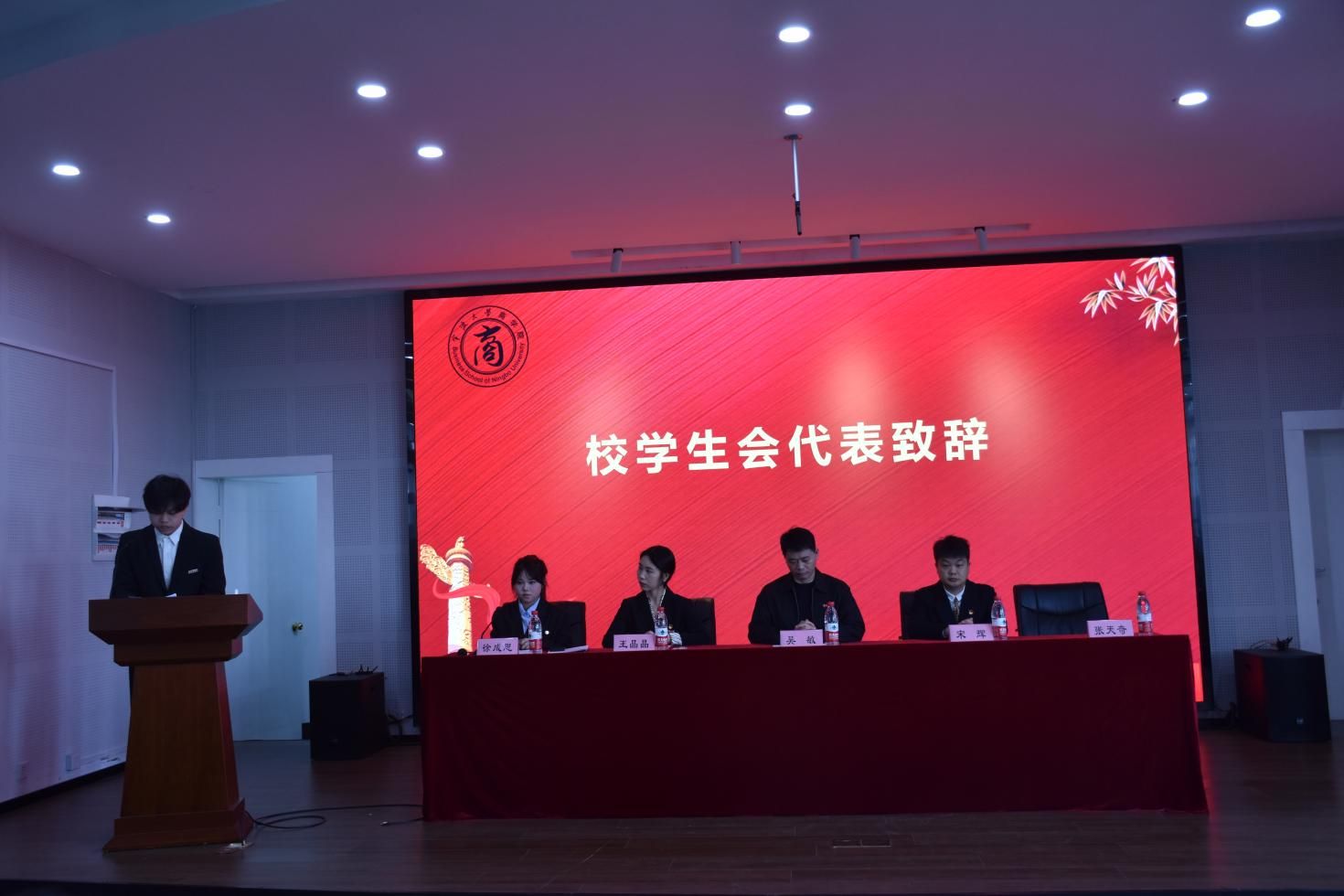 随后,校学生会主席成员张天奇致辞,他对过去一年中的学生会工作进行了总结,并代表校学生会提出几点要求,希望大家能够严于律己,锤炼严实作风,脚踏实地,以真诚之心服务同学。