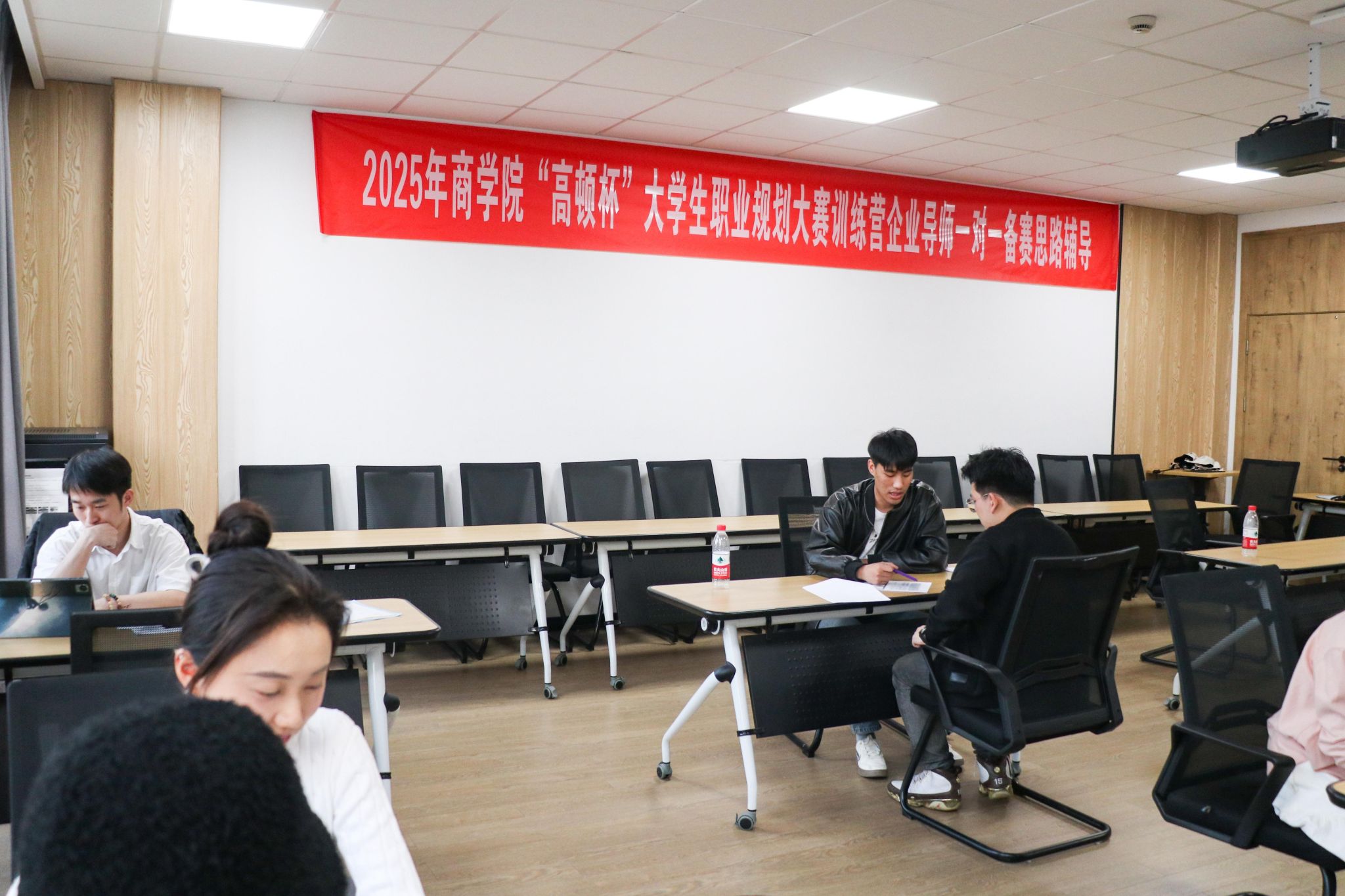 4月12日至13日,91制片厂 “高顿杯”大学生职业规划大赛训练营企业导师一对一备赛辅导活动在学院316和320教室举行。本次指导活动特邀多位高顿教育集团的资深校外导师为参赛学生提供一对一个性化指导。