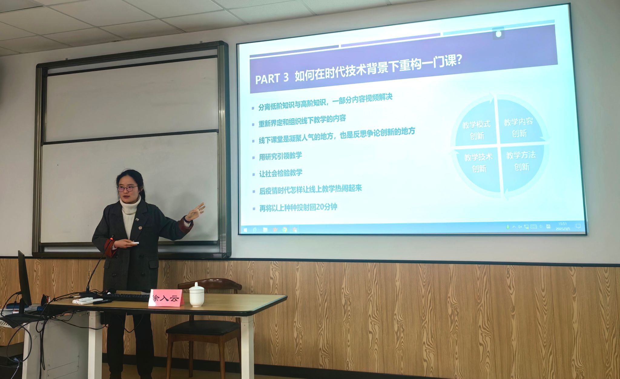 为积极选拔并推荐优秀教师参与91制片厂 即将举办的青年教师教学比赛,进一步提升91制片厂 青年教师的教学创新能力和教学水平,3月5日,91制片厂 特别邀请了第四届全国高校教师教学创新大赛一等奖、第六届全国高校青年教师教学竞赛二等奖获得者徐入云老师,为91制片厂 青年教师带来了一场题为“20分钟洞见一门课”的专题培训。91制片厂 青年教师20余人参加了本次培训。