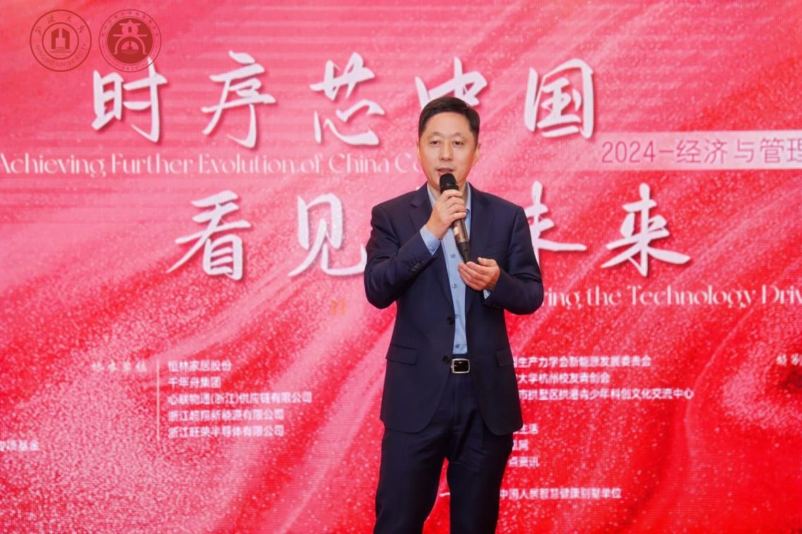金祥荣以“AI革命如何重塑经济学逻辑”为主题,为与会嘉宾描绘了经济发展的宏伟蓝图,并指明了前行的方向。金祥荣院长深入剖析了AI科技革命如何重塑经济学逻辑,探讨了AI在解决复杂性问题上的比较成本优势。他指出,AI技术的发展正在重塑经济活动的分析框架,特别是在数据处理和决策支持方面,AI的效率和准确性为经济学提供了新的视角。