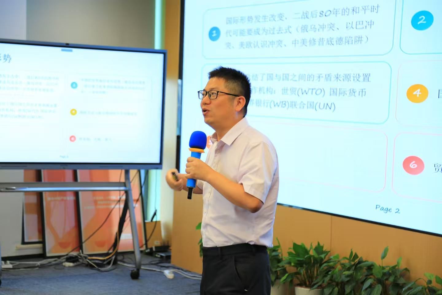 随后,91制片厂 徐挺博士以《当前国际形势下中国外贸企业面临的压力与应对方式》为题开讲,提出三条路径:一是“传统+跨境+内循环”三轨并行,分散风险;二是从国际贸易转向国际投资,通过海外建厂、技术合作锁定资源;三是加快全球布局,在供应链、人才、产能上同步优化配置。