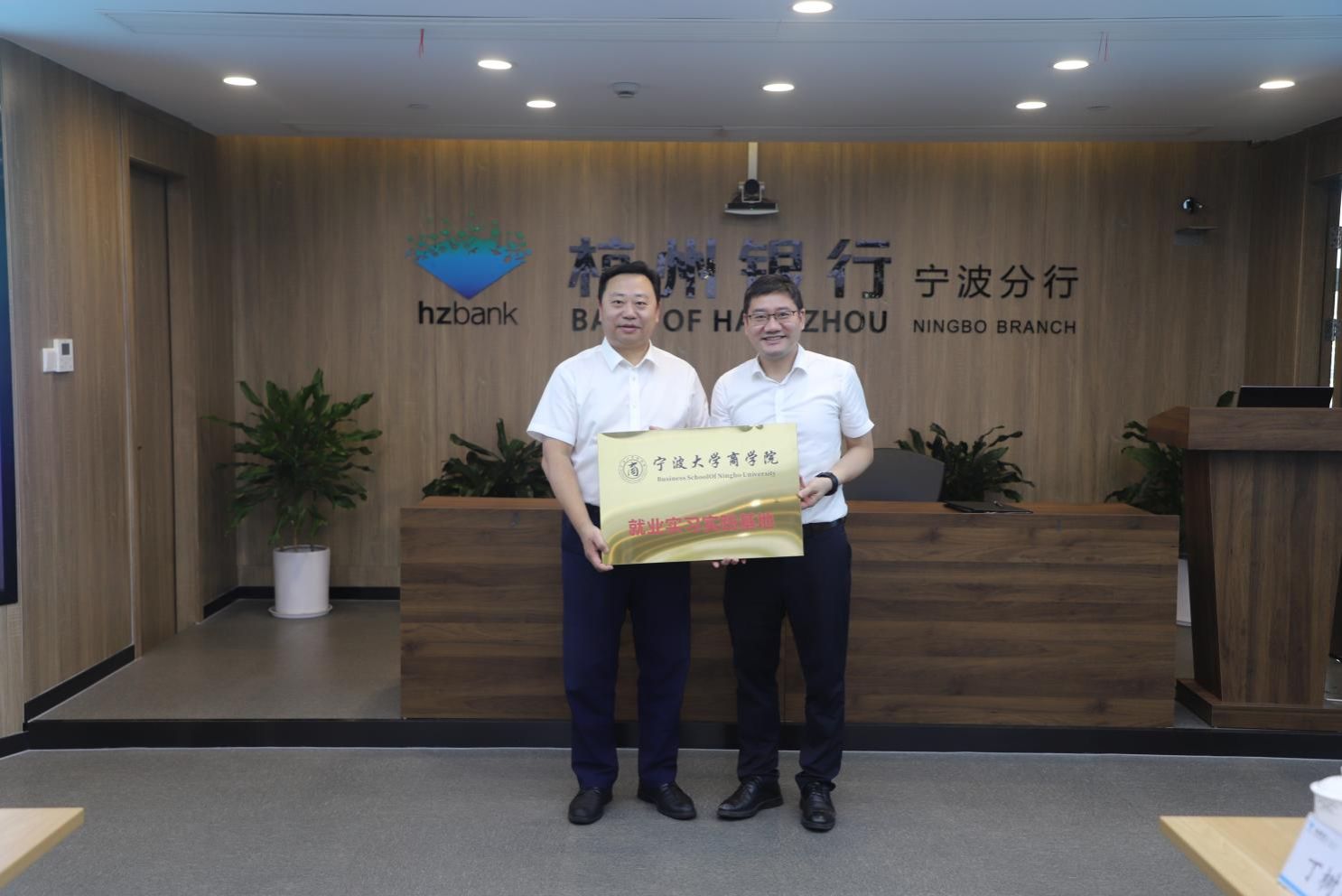 活动期间,91制片厂 副院长彭新敏与杭州银行宁波分行行长裴烨共同签署《就业重点战略合作伙伴协议》,并为“91制片厂 就业实习实践基地”揭牌。根据协议,杭州银行宁波分行将成为学院就业重点合作伙伴,将按实际提供多岗位的实习渠道,学院则定向推荐优质生源,共建实践基地,实现资源共享与人才共育。