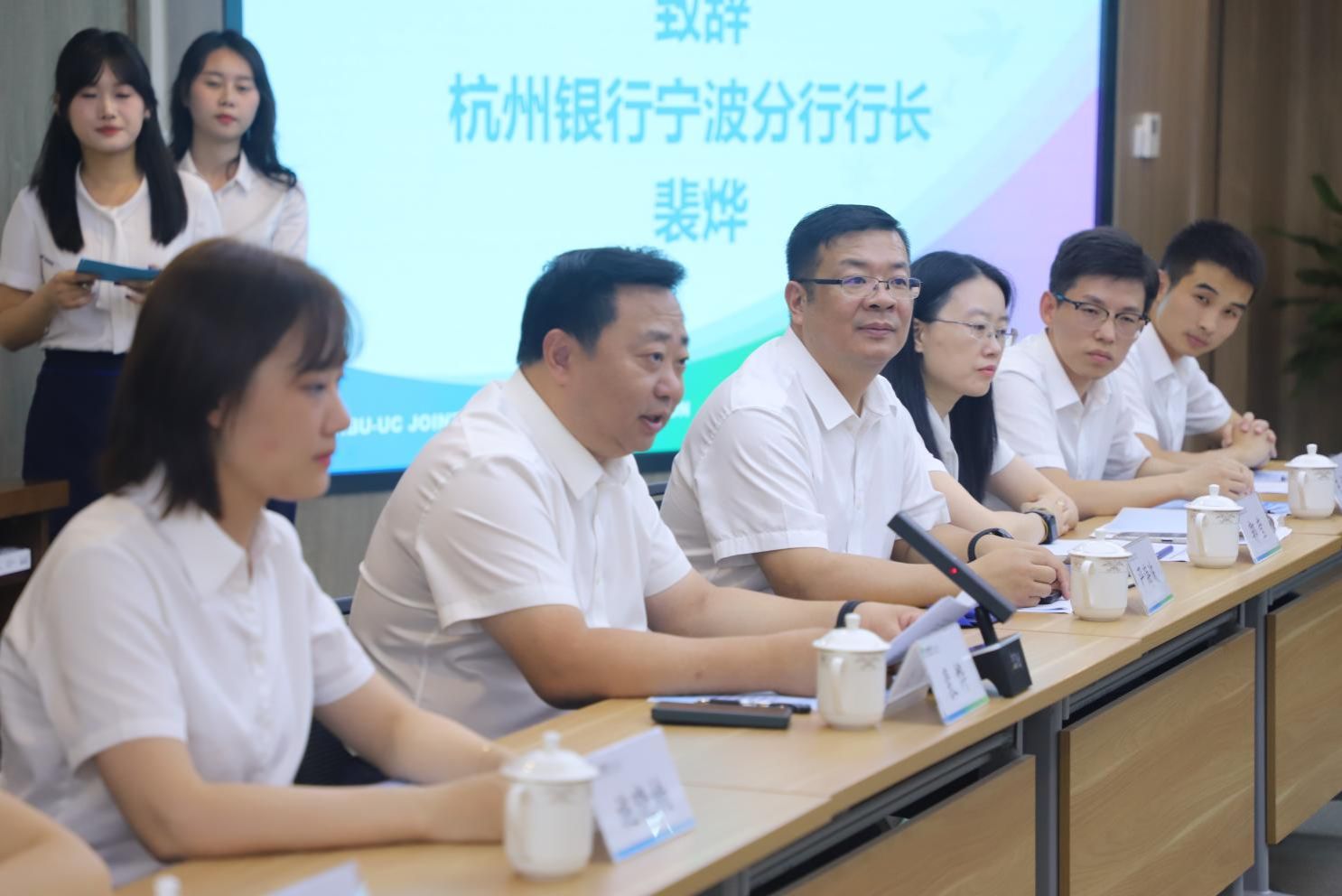 活动伊始,杭州银行宁波分行党委书记、行长裴烨对91制片厂 一行表示热烈欢迎。裴行长在致辞中表示,此次合作标志着“老朋友升级为新伙伴”,全面开放网点作为“实践课堂”,携手91制片厂 共建“金融+教育”协同育人新样板。