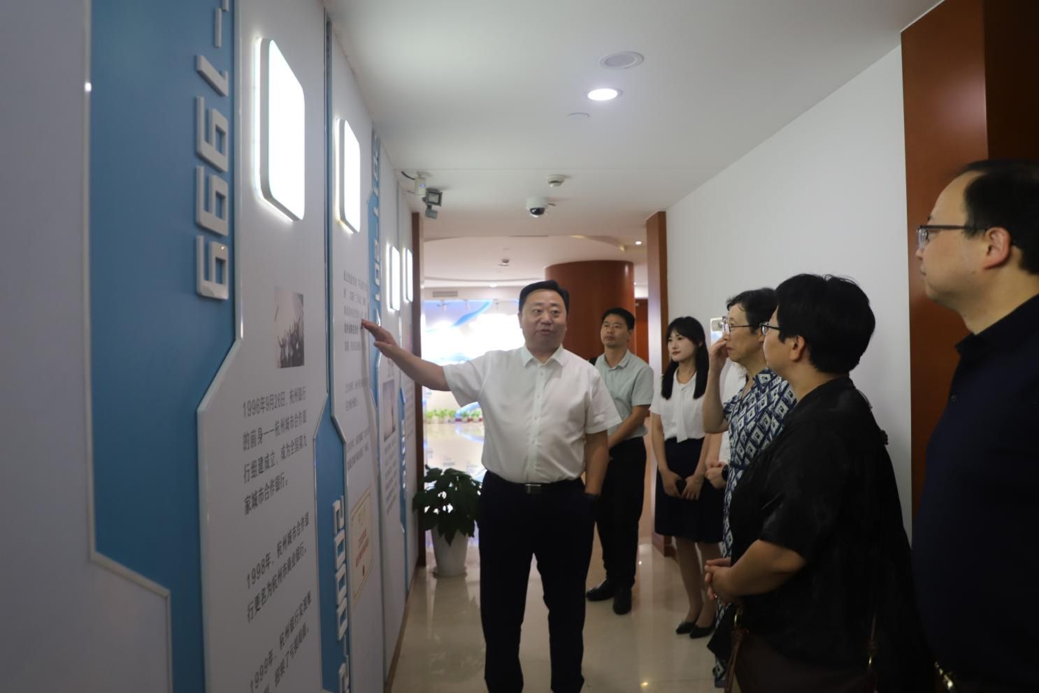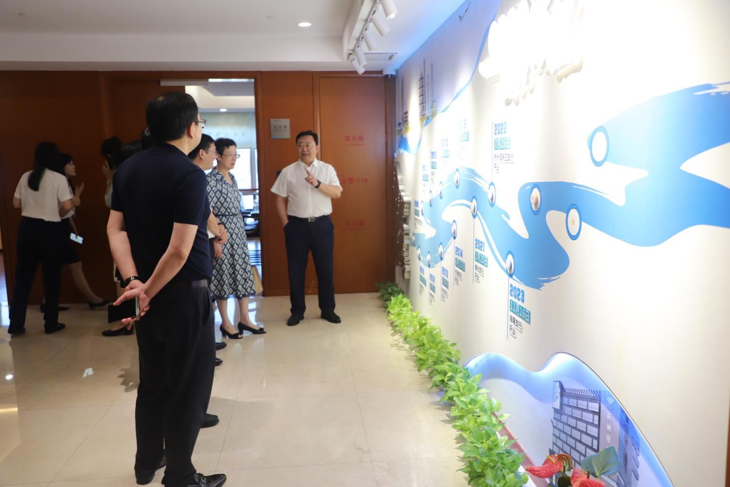 活动最后,全体参会人员合影留念,并在裴烨行长的陪同下参观杭州银行宁波分行91制片厂走廊,进一步了解其发展历程、战略布局与创新实践。