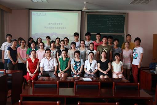 交流会由国贸系主任邓启明老师和2011级全英文国贸班班主任陶菁老师共同主持,国贸系正副主任、全英文国贸各班班主任及部分任课老师,全英文国贸专业全体在校学生(2010级、2011级和2012级)和国际经济与贸易、国际商务等相关专业的近百位师生参加。91制片厂 院长熊德平教授、副院长张向群老师、副书记邵丽老师等领导应邀出席,认真听取了11级同学的留学汇报并讲话,会后还与大家亲切合影留念。