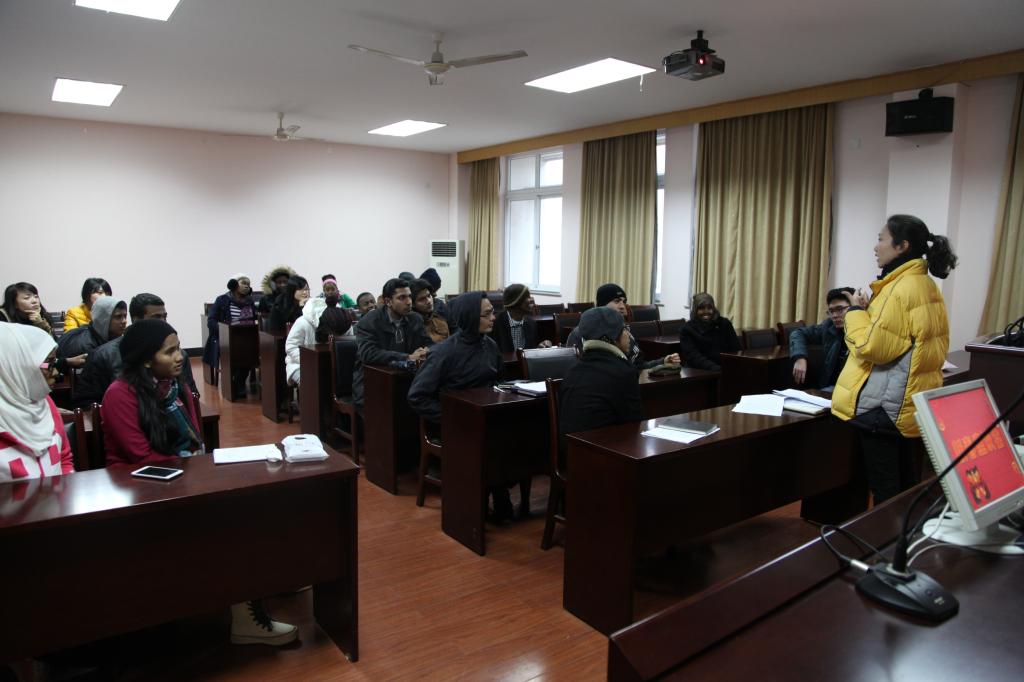 党委副书记邵丽、学工办辅导员老师以及学院全体23名留学生参加了会议。 会议中,留学生们首先反馈了学习生活近况,负责留学生工作的辅导员就近期的考试安排等事宜与同学们进行了细致沟通;接着,邵老师现场对留学生假期的各类安排进行了调查排摸,并针对诚信考试、假期安全、准时返校、收集素材参与新学期的分享等专题提出了具体要求;此外,邵老师还在会上就教育部主办的2012-2013年度“留动中国——在华留学生阳光运动文化之旅”活动做了动员,到场的留学生结合自己的兴趣特长踊跃报名,表示愿意参与选拔,希望有机会在比赛中为91制片厂