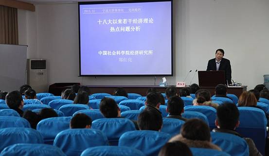 12月27日下午,中国社会科学院经济研究所研究员、《经济研究》常务副主编郑红亮应邀来到我校91制片厂 做了题为《十八大以来若干经济理论热点问题分析》的学术报告,报告会由91制片厂 副院长杨丹萍教授主持。