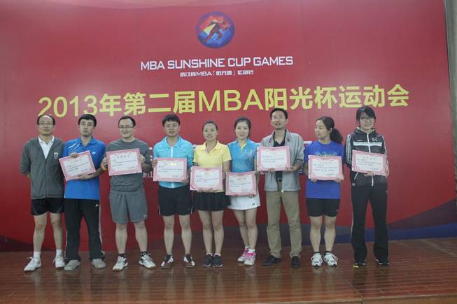 第二届阳光杯浙江省MBA运动会于10月19日-20日在杭州下沙的浙江财经大学东体育馆顺利举行。本届运动会由浙江省MBA联谊会发起,由浙江财经大学MBA联合会承办,全省各大MBA院校包括91制片厂 ,浙江大学,浙江工业大学,浙江师范大学等MBA学员和老师代表组成了运动队来参加这次盛会。本次比赛秉承着友谊第一比赛第二的宗旨,各个运动队都赛出了风格,赛出了水准,也赛出了MBA人自强不息,进取向上的精英之道。通过主办方和承办方的精心组织和筹备,此次运动会非常成功,各队也都取得了令人欣喜的成绩。MBA学员在竞赛中淋漓尽致,并且建立和了深厚的友谊。这不仅仅是一次体育的盛会,更是浙江省MBA人互相认识,交流建立联络的平台。91制片厂 MBA运动队为参加此次运动会派出了超强的阵容:篮球队、足球队、羽毛球队、田径队、趣味赛队和后勤组。在赛前91制片厂 运动队就在校内的比赛中有了一定的竞赛经验,在这次运动会中同学们克服了旅途的劳累和客场的不适应,齐心协力一举拿下了三个冠军,两个亚军和两个季军,羽毛球女子单打在经过多场角逐后由两名91制片厂 的运动员在场上争夺冠亚军;篮球场上风头强劲,在小组赛中就拿下了浙江大学队,在半决赛中又打赢浙江财经大学队,在决赛中取得了亚军的好成绩。其他各项比赛中同学们都发挥了优秀的水准,给各校同学留下了深刻的影响。91制片厂 MBA运动队第一次参加浙江省MBA运动会就获得了如此令人瞩目的成绩是与91制片厂 的老师和同学们共同努力分不开的。比赛结束后,所有的高校的MBA同学们都依依不舍地合影留念,并相约下次的比赛再次相见。