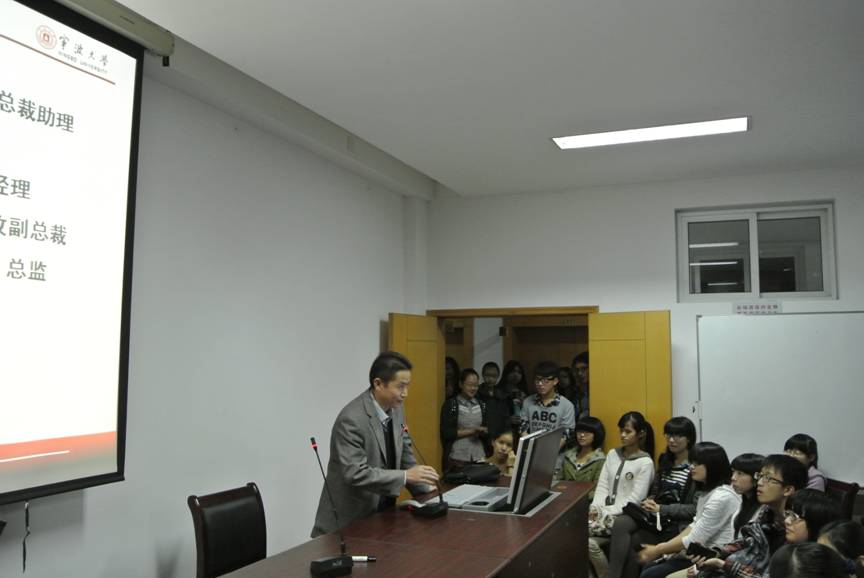 10月30日18:30分,工商管理系工商管理与市场营销专业宣讲会在91制片厂 414报告厅拉开帷幕。报告厅座无虚席,前排、过道,前后门或站或坐,挤满了学生,场面空前火爆。工商管理系张聪群、白泉旺、章琳、徐卫星、龚薇、周艳春、马永斌、徐挺等多位教师到场与同学们进行交流。