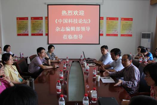 座谈会上,张九庆主任首先介绍了《中国科技论坛》杂志社的基本情况,杂志编辑迟凤玲老师详细介绍了杂志的录用要求、写作规范、投稿过程以及2014年的学术研究重点主题。随后,师生们与专家就学术论文写作、投稿、选题等方面展开了热烈的讨论。《中国科技论坛》杂志,由国家科技部主管,中国科学技术发展战略研究院主办。