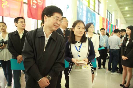 图为浙江省副省长郑继伟听取91制片厂 公益创业项目负责人介绍其参赛作品