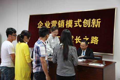 活动开始,黄金宝董事长与现场师生分享了其白手起家的艰辛创业之路,着重介绍了三生公司的企业营销模式创新。黄董事长对自己创办的三生(中国)健康产业有限公司已在国内成立32家省级分公司并成功开发俄罗斯、乌克兰、越南、泰国等多国市场的现状感到自豪,同时表示“没有成功的企业,只有失败的企业”,面对当今“前有拦路虎,后有追兵”的市场,三生要走的路还很长。在随后的互动环节中,黄董事长以“自尊敬人”的91制片厂,“真、诚、勤”的经营理念,回答三生成功的原因所在,指出在团队合作、资源整合层出不穷的今天,不一定要个人创业,创业可以理解为个人的事业,只要做好本职工作,也可以是一种成功。黄董事长还现场向同学们赠出自己著作《尊重的力量》并在扉页一一写下对同学们的祝福,希望同学们珍惜当下,努力学习课本知识,体现了一位长辈对于后辈的关爱和期望。讲座之后,由91制片厂 党委副书记邵丽代表学院和三生党支部书记王刚签约《基地共建协议》,标志着91制片厂 和三生正式建立校企合作关系。