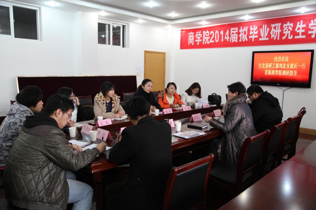 1月7日上午,校党委研工部刘友女部长一行三人来到91制片厂 开展研究生奖学金工作的调研。91制片厂 党委副书记邵丽、学工办主任董璐、研究生辅导员王莹、研究生秘书张珊珊、研究生会主席江奕和部分研究生代表参加了此次调研会。