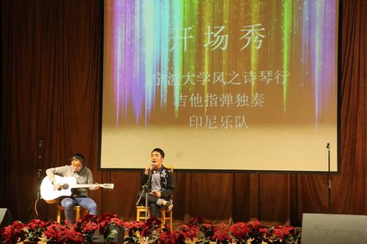 晚会现场气氛热烈,掌声不断!来自印度尼西亚留学生的吉他弹唱拉开晚会的序幕,13工商班优美大方的的交谊舞、韵味十足的独唱《诗人漫步》、歌曲串唱,阳明学院经管一班的爵士舞、经管四班笑料多多,嗨翻全场的小品《宁大甄嬛传》,轮滑社的《十字cross》,充满动感的《小苹果》舞曲,以及工商管理系应志芳老师独唱《月亮代表我的心》精彩纷呈。最后,全场晚会在工商131班全体同学的一曲《明天会更好》中圆满落幕。