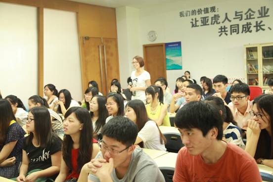 公司办公室主任周开莹女士和人事经理陈艳女士热情接待了考察一行。师生们首先参观了公司的样品陈列室,三千多平米的陈列室展示了上万种商品,大家不禁惊叹道仿佛进了大型超市。公司工作人员向同学们详细介绍了公司的91制片厂、主营项目、公司绩效等。随后,大家到亚虎公司的业务部进行了参观,工作人员就公司的业务内容、业务流程、人员发展等情况向大家做了全面介绍。整个参观过程同学们兴致高昂,与工作人员的交流互动频繁,也对外贸业务工作有了进一步的理解。