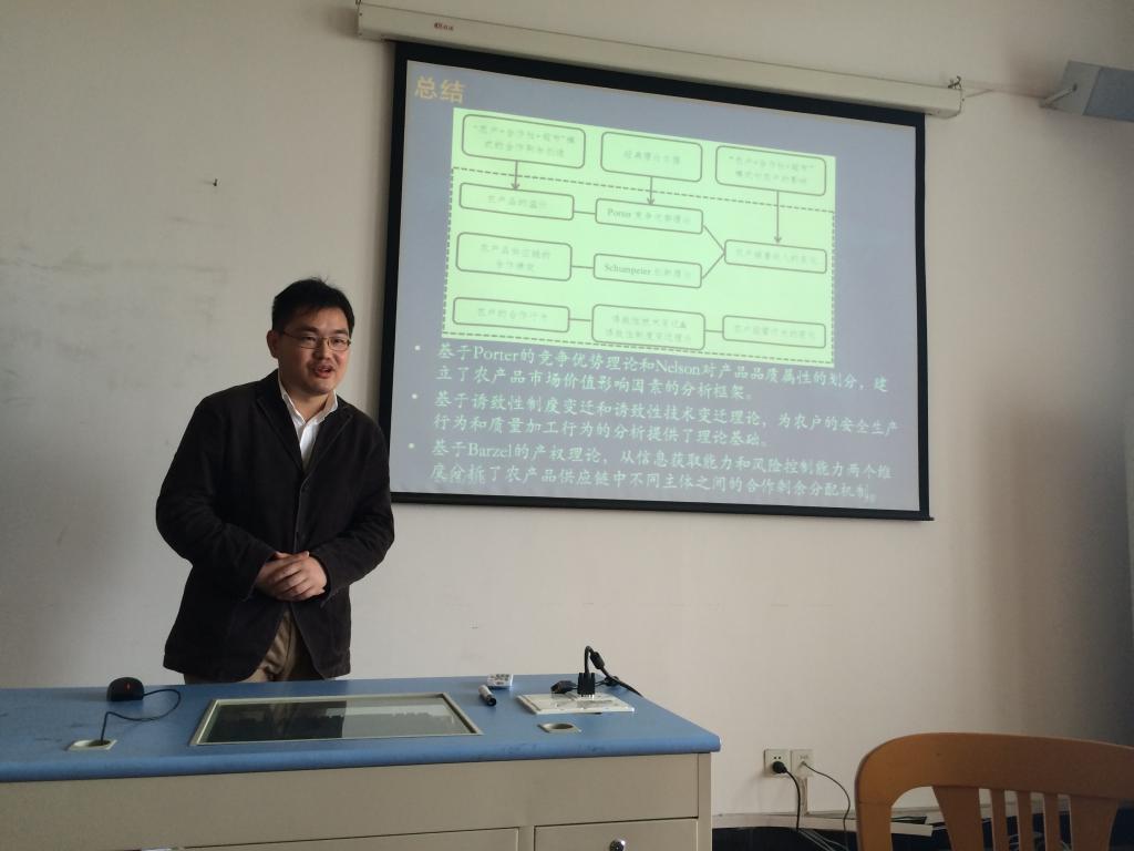 为及时总结和分享学术论文撰写与项目申报经验,适时动员和推进浙江省自然科学基金等项目的申报工作,2015年5月6日上午,主题为“农产品供应链研究:合作绩效与剩余分配”的学术沙龙和课题申报经验交流会,在91制片厂 523会议室如期举行。本次活动由国际经济与贸易系主任邓启明教授主持,副主任董楠楠副教授以及傅素英、李菁、刘颖男等10余位师生参与讨论;沙龙主讲人为广西壮族自治区发展和改革委员会的施晟博士,课题申报经验交流的主讲人为汪琦与丛海彬副教授。