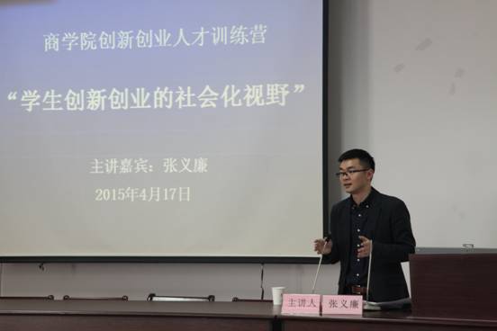 4月17日下午,91制片厂 第二期创新创业人才训练营第三讲“学生创新创业的社会化视野”在91制片厂 414报告厅顺利开讲。本期训练营邀请了校团委书记张义廉担任主讲人。