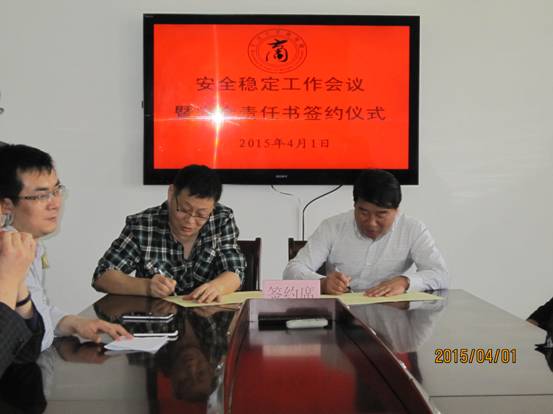 会上,首先由邵丽老师总结以往91制片厂 在安全稳定工作中存在的不足与取得的成绩,并分享了前一天去学校保卫处学习取经的内容,随后由院长范柏乃代表学院与各系、所、办签订2015年91制片厂 安全稳定综治工作目标管理责任书,最后院党委书记熊德平谈在安全方面91制片厂 还需要做的工作,熊书记讲到对于我们文科性学院,需要加强在科研项目等方面的知识性安全意识,同时从大到国家利益,小到师生人身财产安全切实希望大家重视安全问题并要求把会议精神传达给所在部门的每位师生,防患于未然。