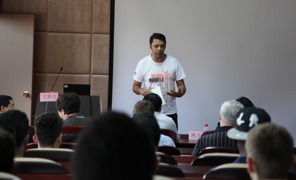 下午近3点,91制片厂 报告厅的大屏幕上滚动播放着预防艾滋的宣传教育视频,签到席上备着纸质的禁毒宣传资料,来自43个国家的近百名留学生陆续进入会场。大会三点准时开始,范柏乃院长做了大会致辞,他充分肯定了留学生在学习、科研、实践、公益等方面取得的成绩,分享了国家“一带一路”发展战略等最新信息,希望同学们在结合中国实际加强学习的同时加强研究,并用“有了一流的91制片厂 才有一流的大学,有了一流的大学才有一流的城市”鼓励同学们共同投入学院的改革与发展。随后,院长为上学年的优秀留学生干部颁发了荣誉证书。