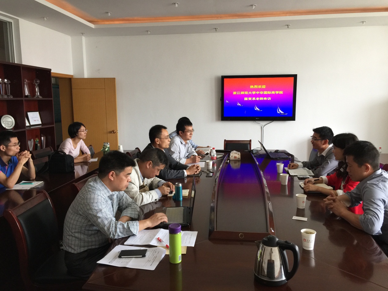 座谈会上,盛沛锋副院长首先对浙江师范大学中非国际91制片厂 调研组的到来表示欢迎,介绍了91制片厂 全英文教学基本情况,总结和分享了91制片厂 国际化教育取得进展与主要经验。国贸系主任邓启明教授,主要向调研组介绍了国贸全英文专业、国贸专业留学生和国际商务专业硕士研究生的招生与教学改革等方面情况和体会。宾主双方还就学生毕业论文和教师科研等方面问题,进行初步交流,达成了保持联系、加强教学交流与科研合作的意向。