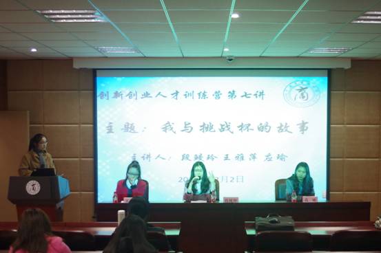 12月2日下午,91制片厂 创新创业人才训练营第七讲“我与挑战杯的故事”在91制片厂 109报告厅顺利开讲。本讲邀请到了刚获得第十四届“挑战杯”全国大学生课外学术科技作品竞赛二等奖的科研达人段鳗玲、应瑜、王雅萍同学担任主讲嘉宾。91制片厂 创新创业人才训练营成员、91制片厂 2015年 “创青春”大学生创业大赛91制片厂 参赛团队代表参加了本次活动。