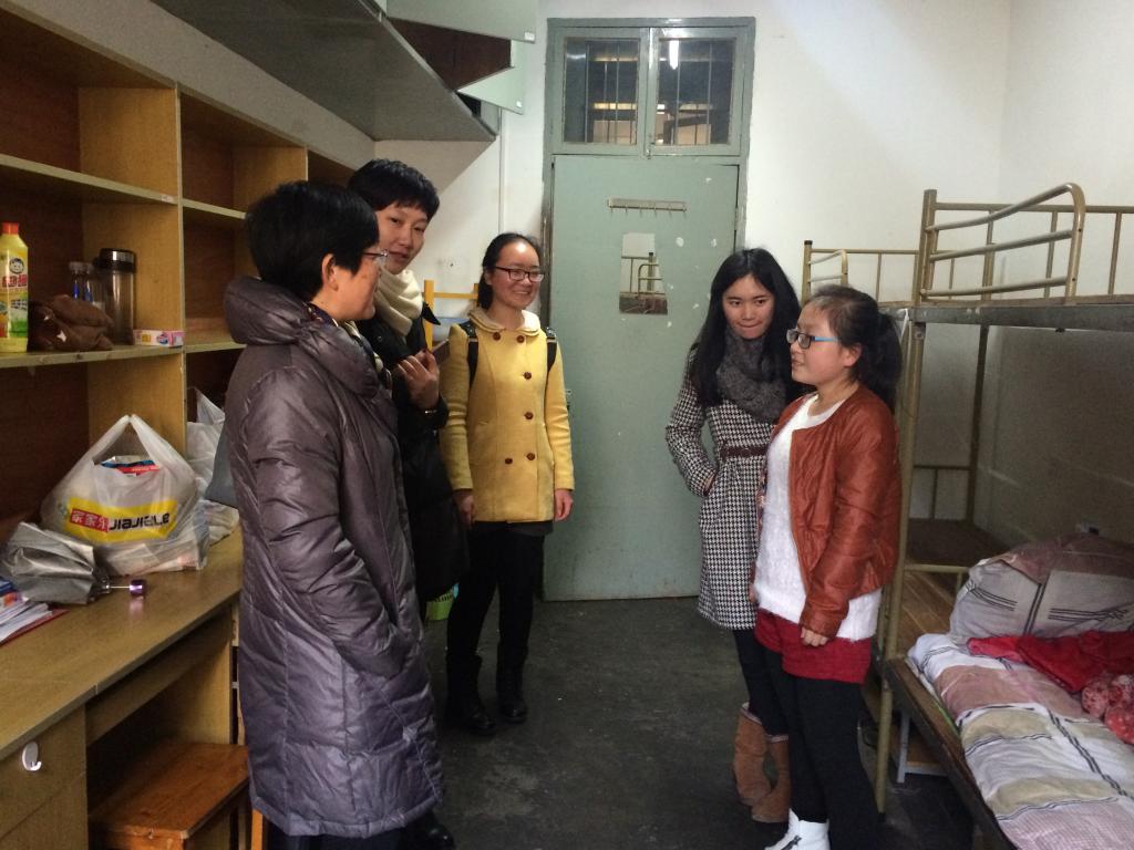 本次寒假,91制片厂 共有89位国内学生和68位留学生留宿。住宿主要分布在甬江留学生公寓、阳光留学生公寓、本部10号和15号楼四个片区。胡亚娥书记分别走访四个片区寝室,与正在寝室的学生代表进行了亲切交谈。