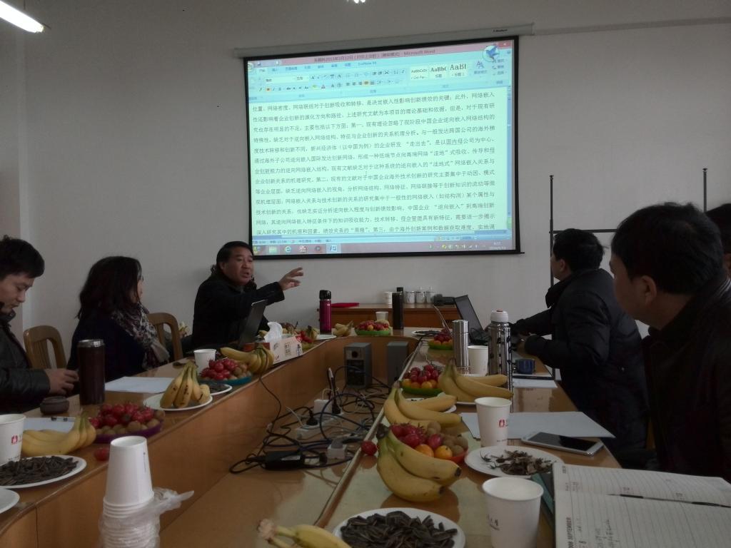 燕小青老师首先介绍了金融系老师在研国家项目情况,接着对符合国家两大基金项目申报条件的老师进行动员,然后进入项目申报辅导环节。朱顺林、余新平、苏小松和张二华等拟申报项目的老师汇报了项目选题、研究基础、研究内容与方法以及创新之处,范柏乃院长对选题的确定、内容的构思、方法的选择与创新点的提炼进行点评与指导,其他有在研国家项目的老师结合自身申报经验,对项目申报提出了诸多有益的建议与意见。
