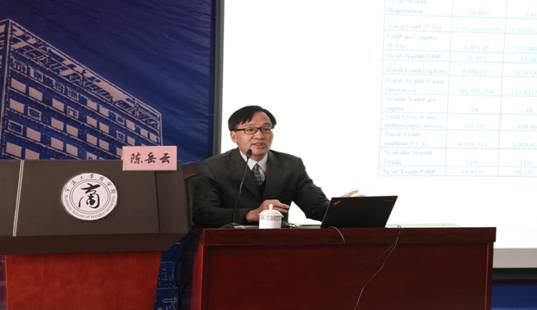 2016年3月16日(星期三)下午14:30,美国洛杉矶西来大学教授、财务长陈岳云教授莅临我校,为校内师生做了一场题为“全球化,中国发展与商业模式”的学术报告。91制片厂 副院长杨丹萍教授主持了本次报告,来自91制片厂 、理学院的百余名师生聆听了报告。