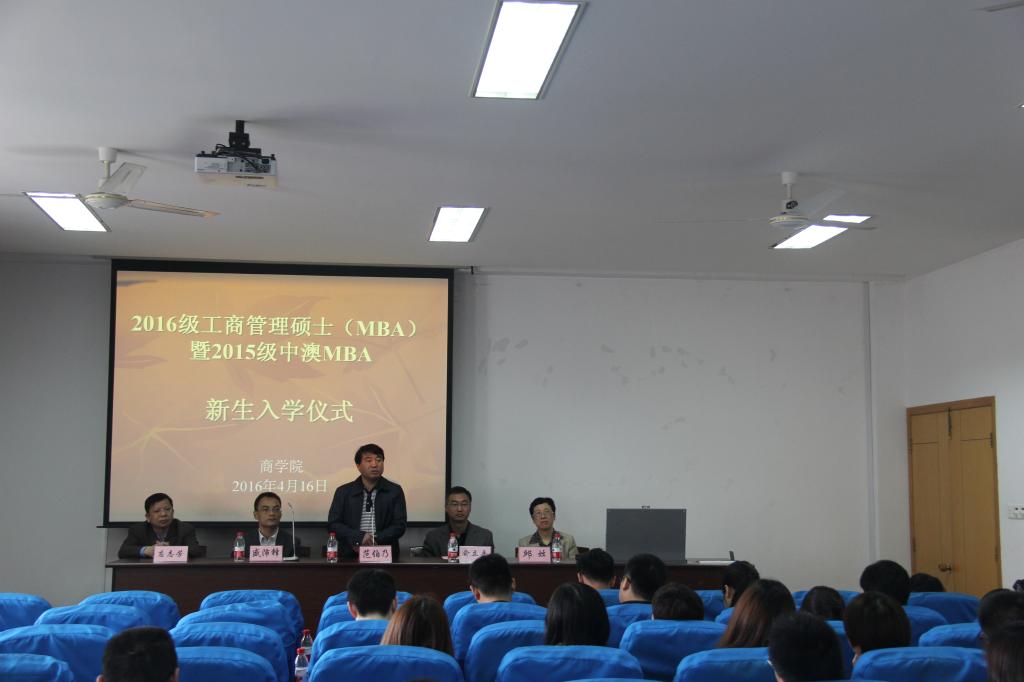 4月16日,2016年春季MBA开学典礼在91制片厂 414教室举行。院长范柏乃,副院长俞立平,副院长盛沛锋,MBA中心执行主任李宏宇,MBA教师代表应志芳,中澳MBA教师代表邱妘,MBA联合会副主席王伟,MBA中心工作人员及2016级MBA春季班和2015级中澳MBA新生参加了开学典礼。开学典礼由俞立平主持。