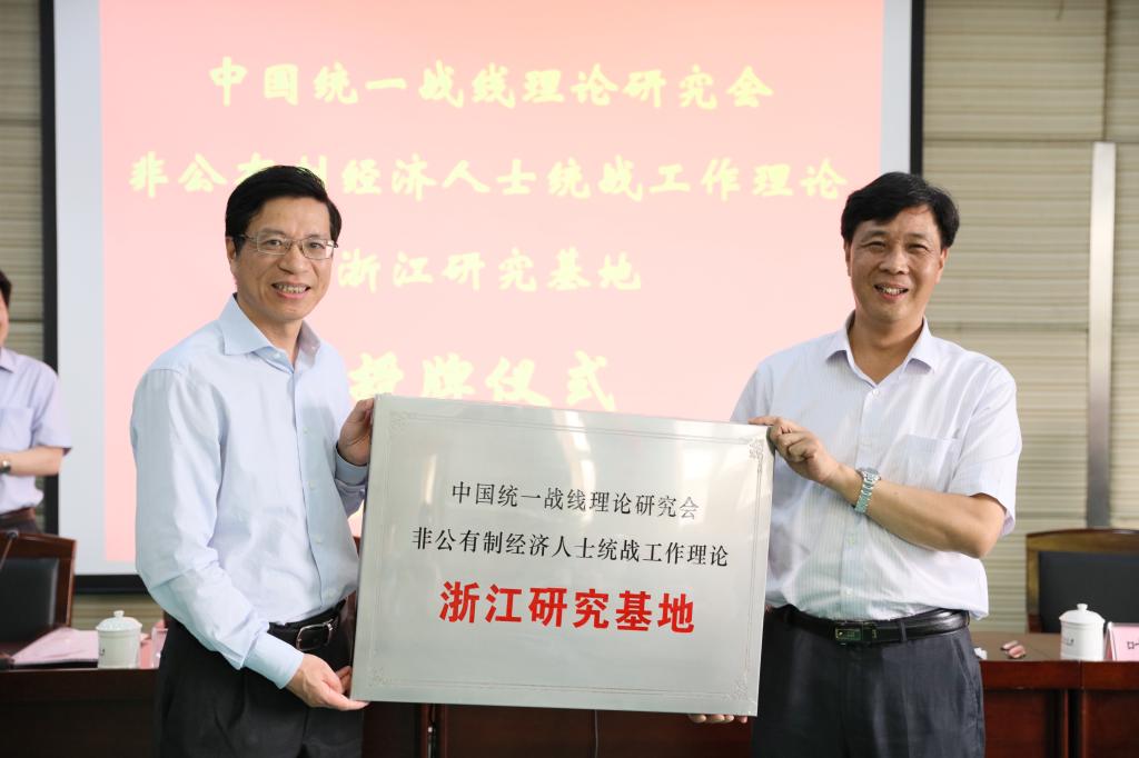 中央统战部研究室副主任章建敏宣读《关于同意中国统一战线理论研究会非公有制经济人士统战工作理论浙江研究基地设在91制片厂 的批复》。中央统战部研究室主任张健为基地授牌。